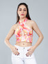 Abstract Print Cross Halter Top