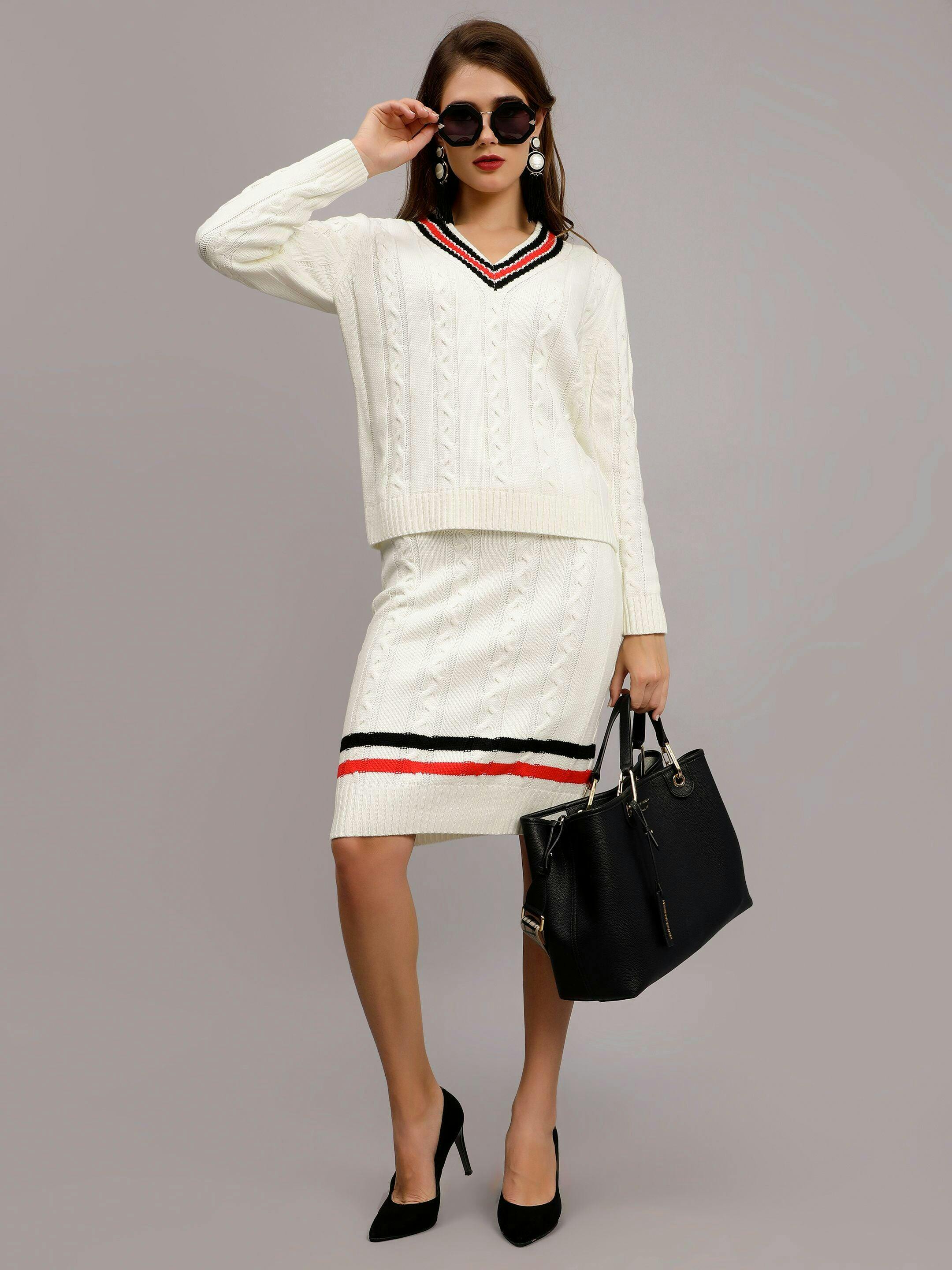 Cable Knit Pullover Skirt Set