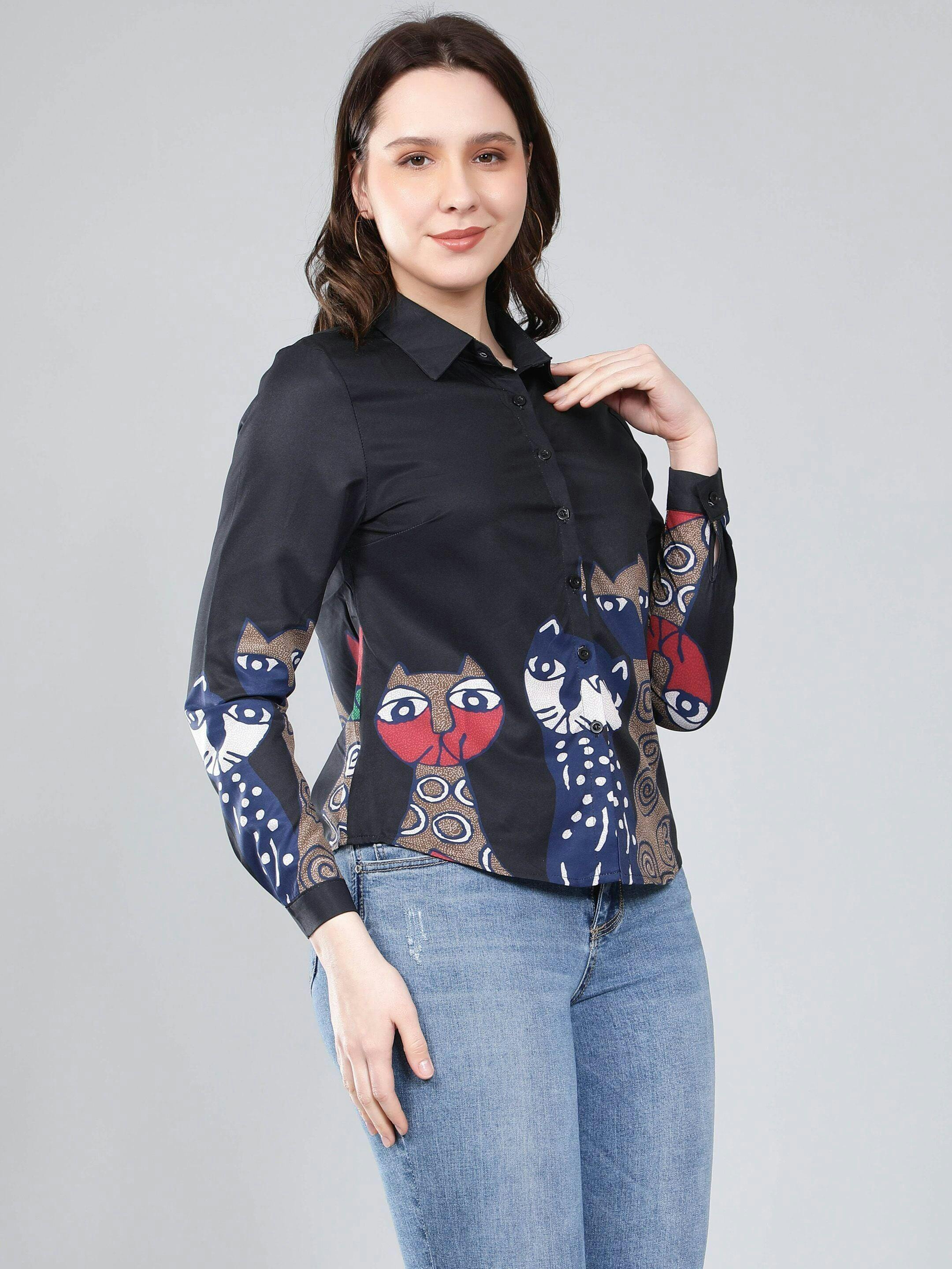 Cartoon Cat Printed Shirt