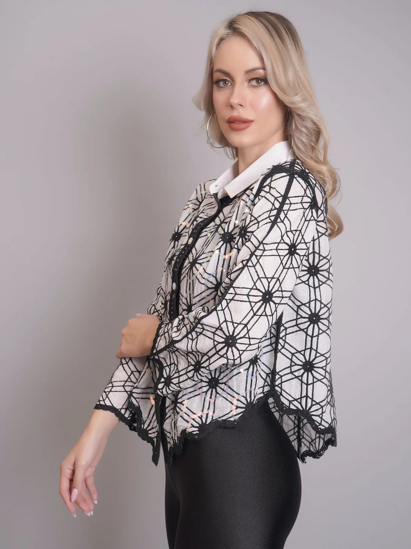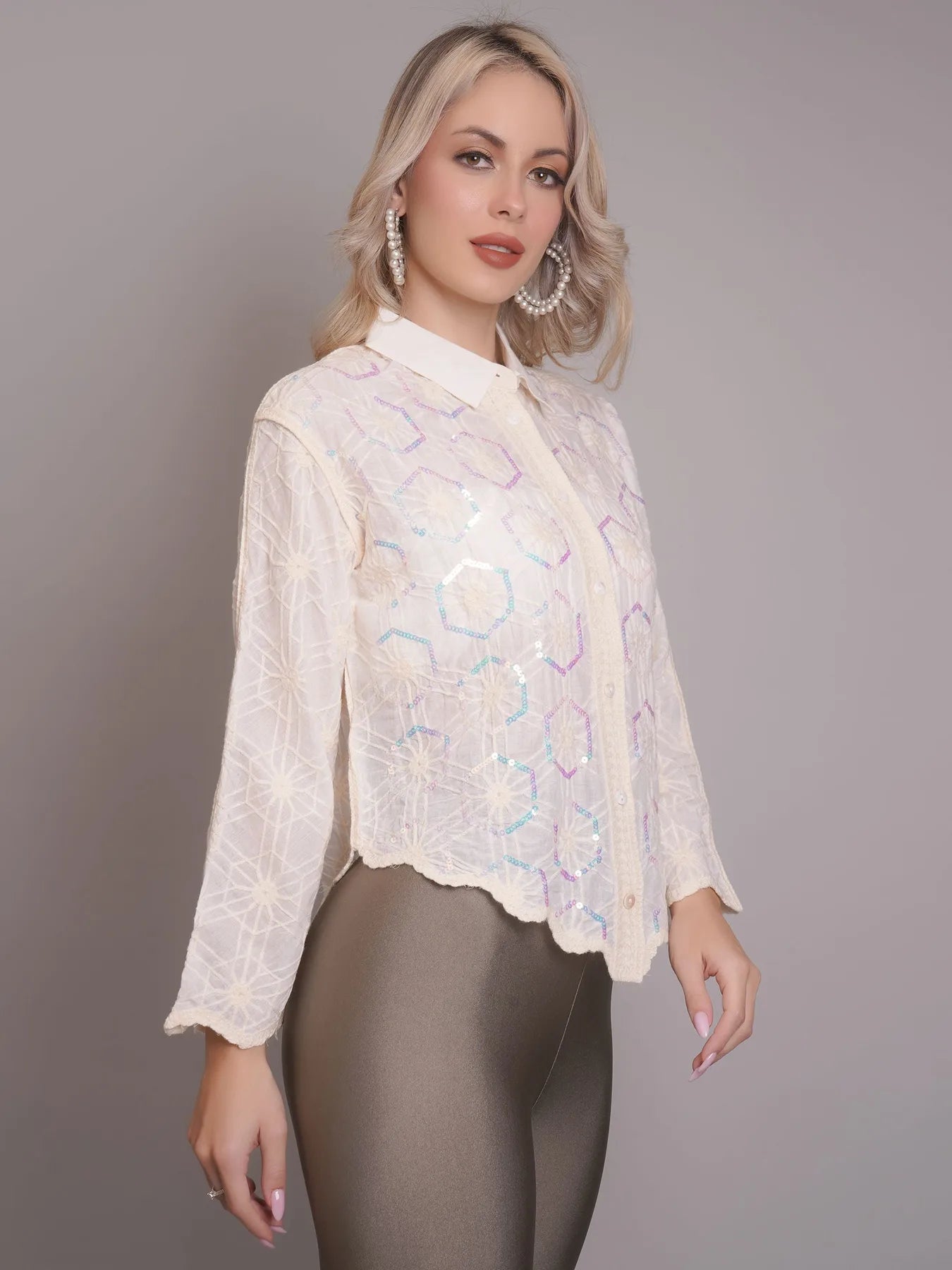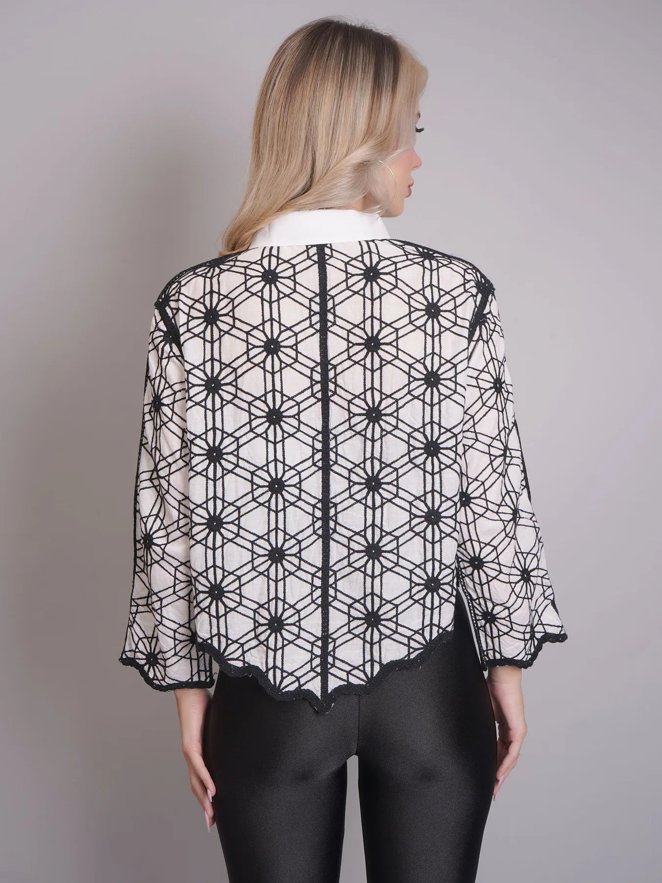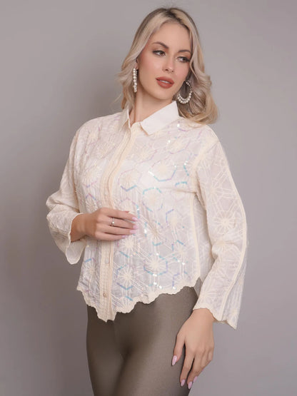 Introducing the Chain Stitch Embroidered Shirt – a versatile piece that is both trendy and elegant. Perfect for any occasion, from formal meetings to casual outings, this shirt features a stylish turn-down collar, drop shoulders, and long comfortable sleeves.