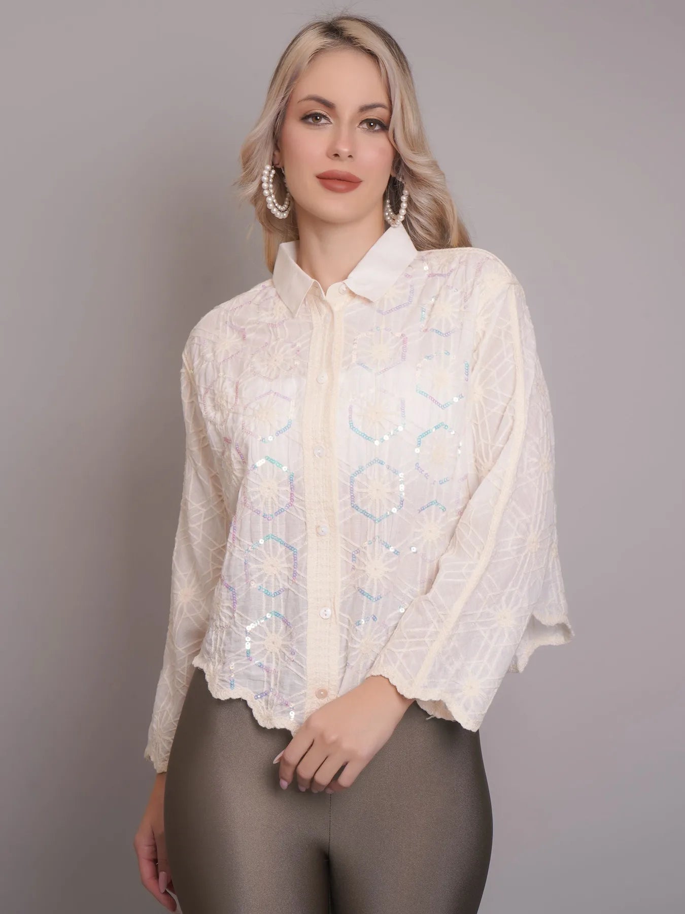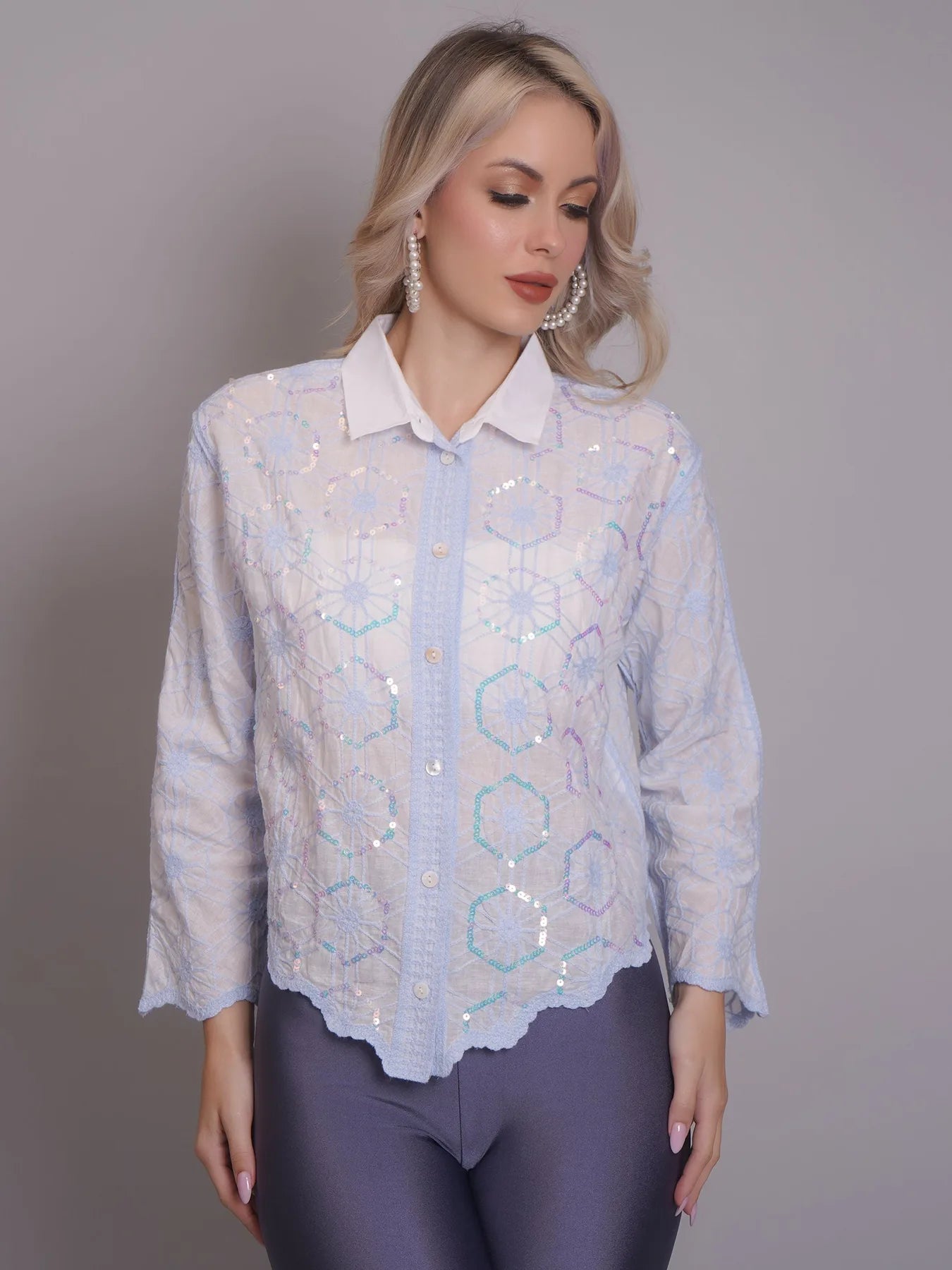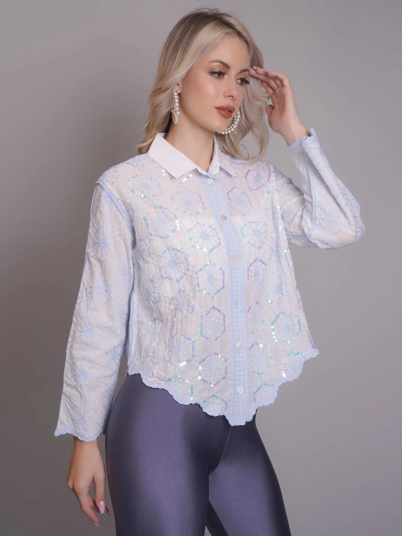 Introducing the Chain Stitch Embroidered Shirt – a versatile piece that is both trendy and elegant. Perfect for any occasion, from formal meetings to casual outings, this shirt features a stylish turn-down collar, drop shoulders, and long comfortable sleeves.