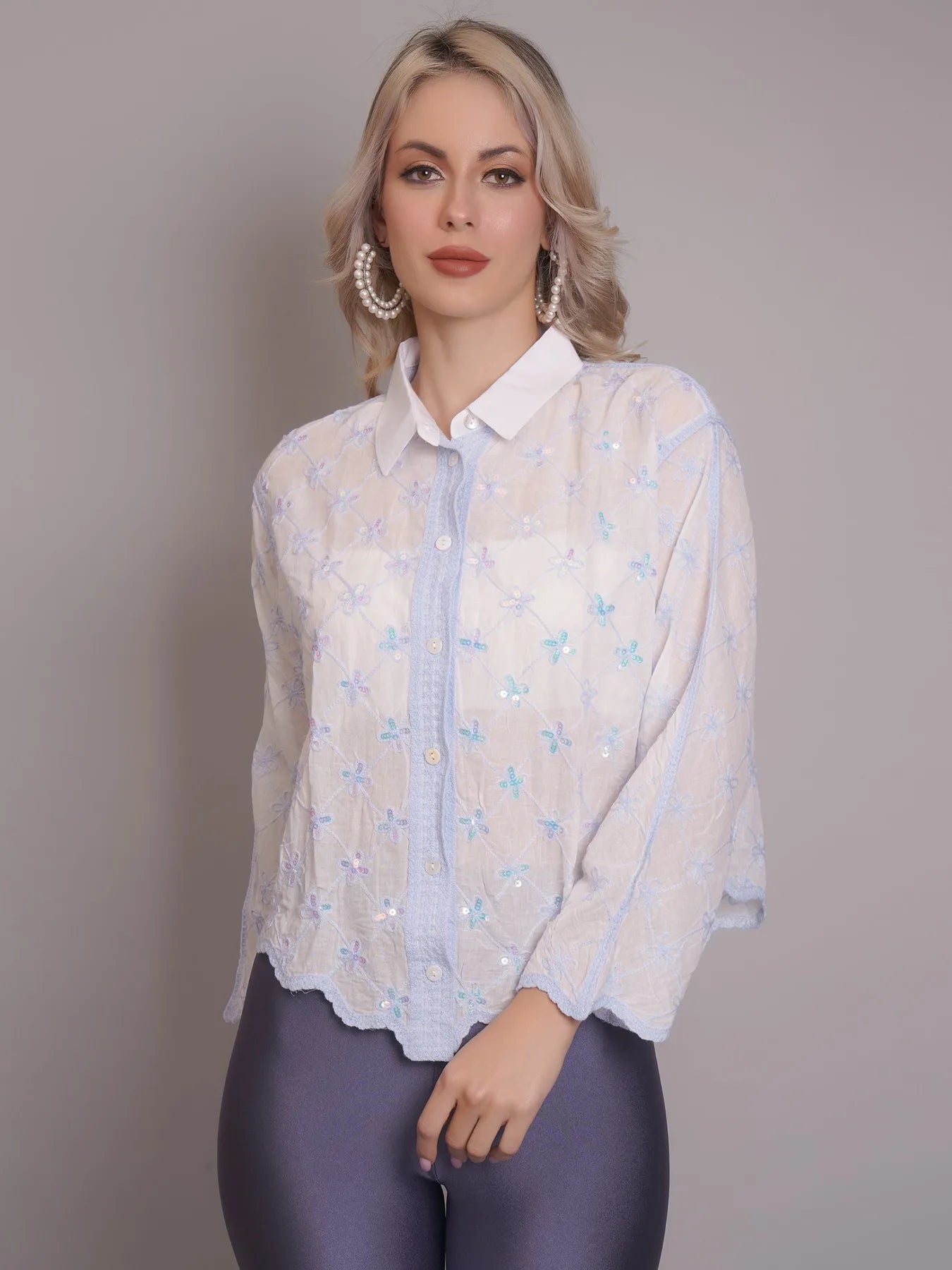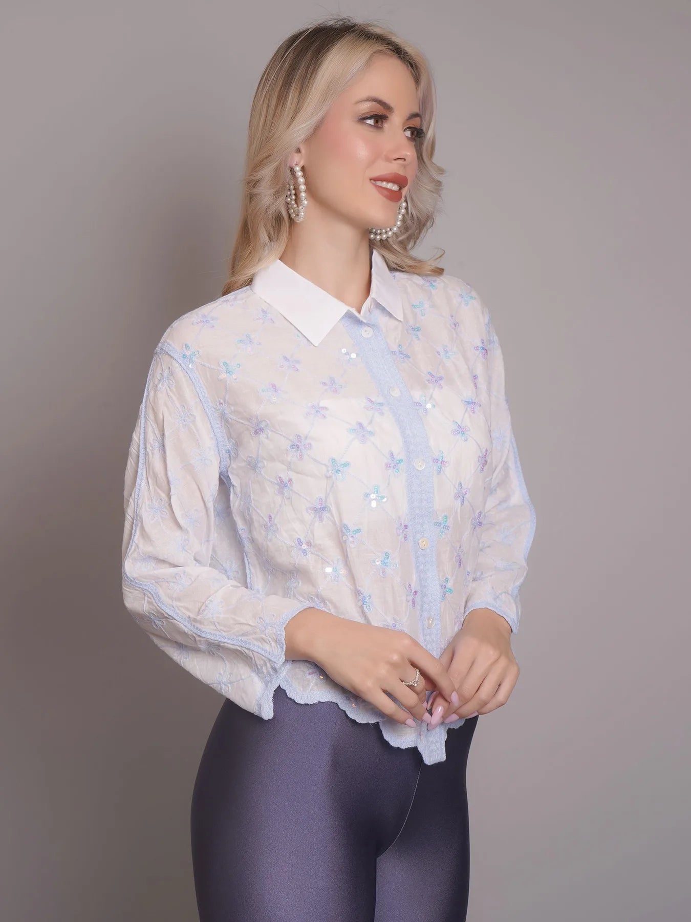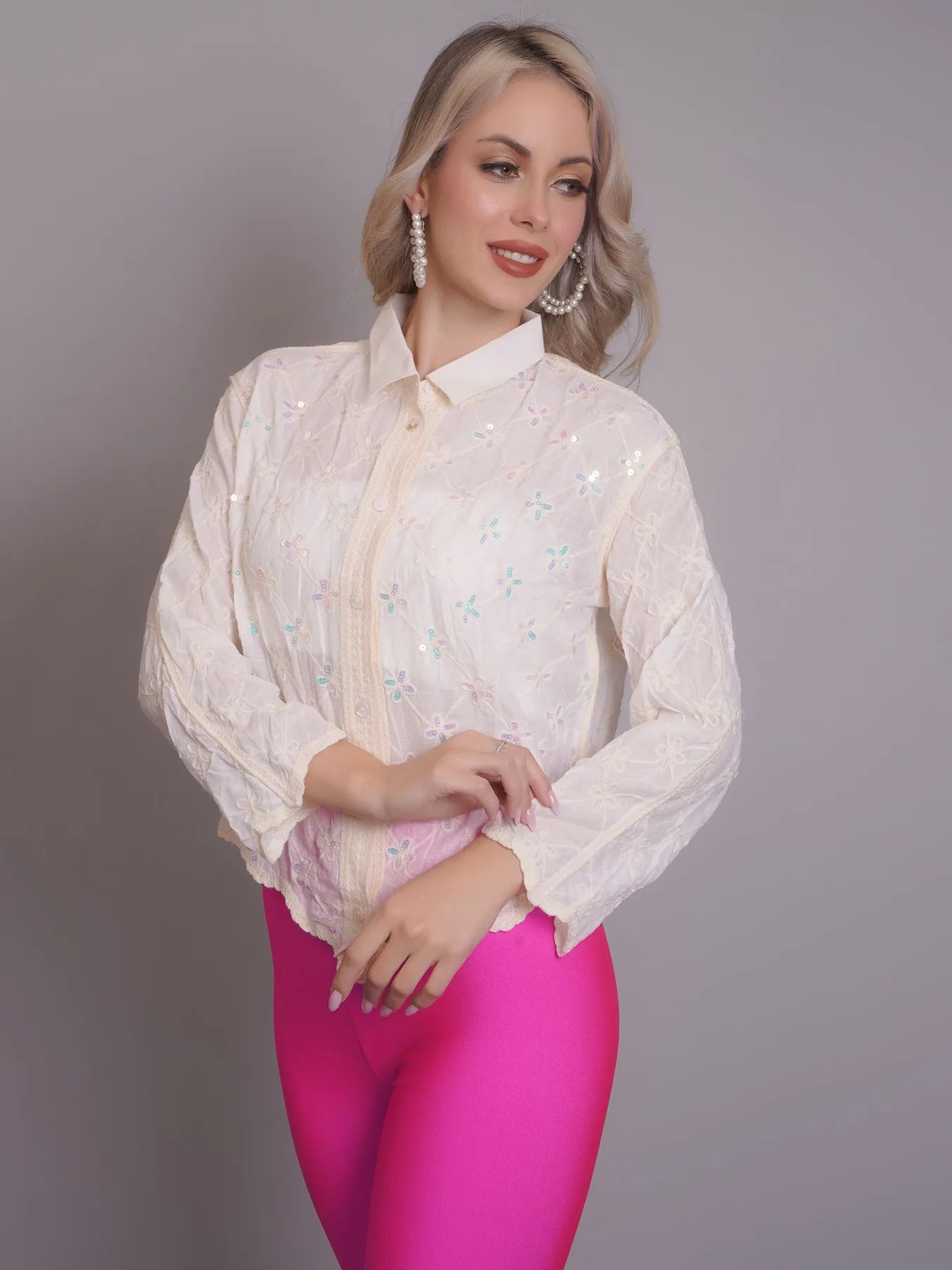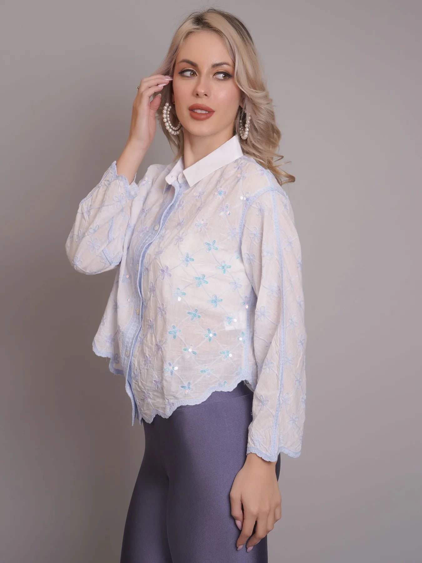 Introducing the Chain Stitch Embroidered Shirt – a versatile piece that is both trendy and elegant. Perfect for any occasion, from formal meetings to casual outings, this shirt features a stylish turn-down collar, drop shoulders, and long comfortable sleeves.