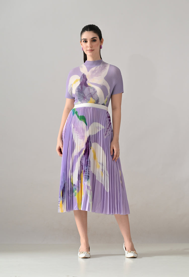 Chromatic Printed Pleated Two Piece Set