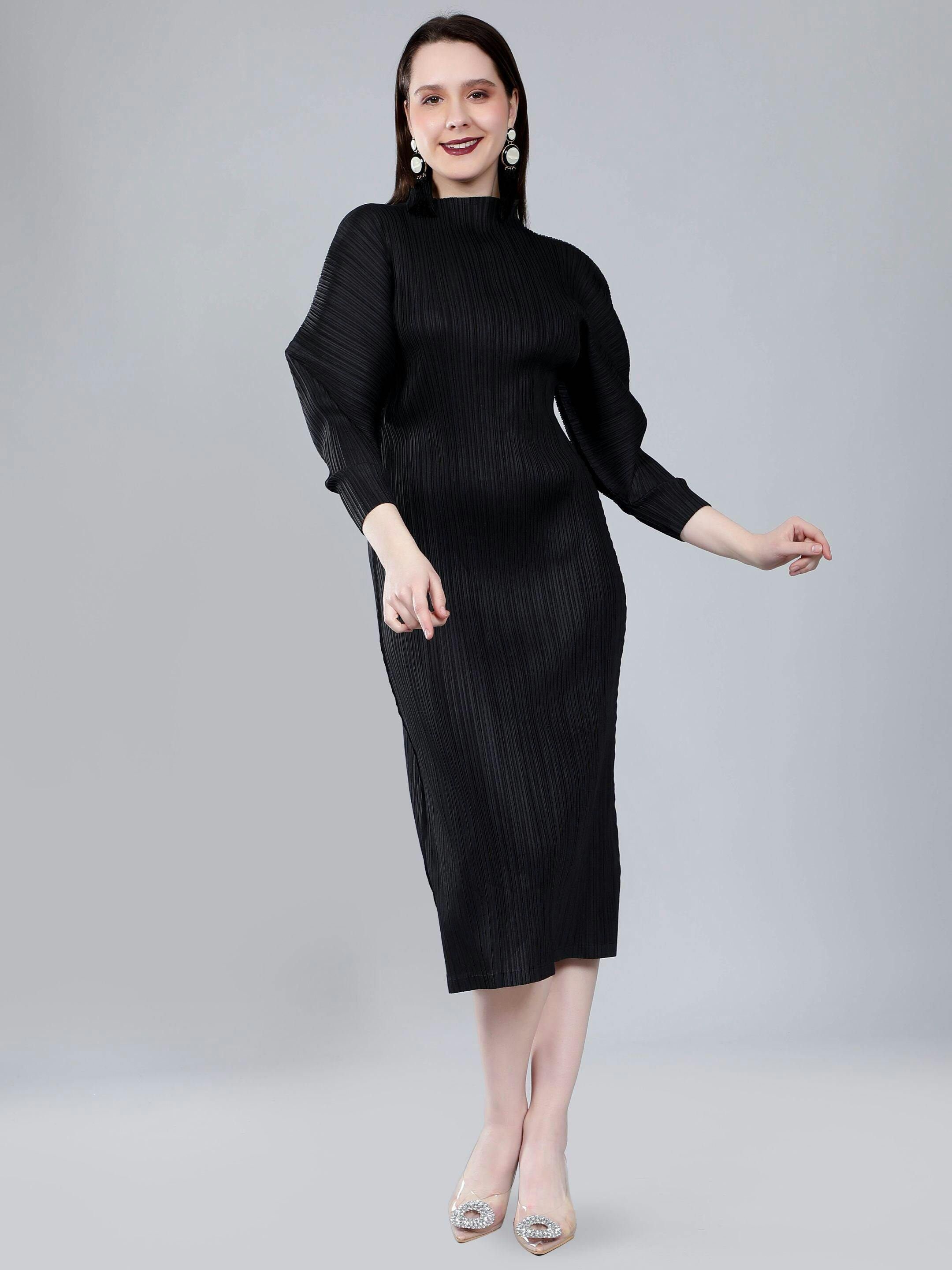 Jewel Neck Pleated Dress