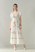 Make a statement with the Mirror Charm Maxi Dress, featuring a deep V-neckline and intricate fox mirror with thread embroidery. Designed with butterfly short sleeves, a cinched waistline with tassel string, and a flowy long silhouette with attached lining, this maxi is crafted in breezy, soft non-stretchable fabric for an effortlessly comfortable and stylish fit.