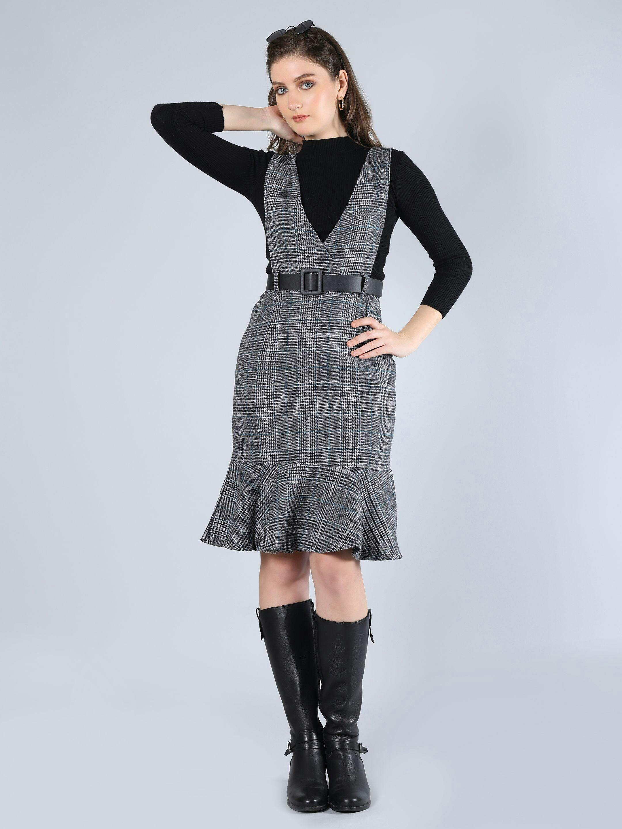Stay stylish this season with the Plaid Winter Midi Dress featuring a round-neck sweater paired with a fitted plaid dress. Complete with a pleated skirt bottom and a detachable belt, this chic non-stretchable fabric ensemble is perfect for autumn and winter outings.