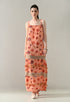 Turn every step into a sway with the Sunset Rhythm Maxi, a free-spirited silhouette that radiates joy. In a warm coral-orange base, this dress is elevated with bold concentric circle prints, boho-chic tassel trims, and metallic threadwork bands that shimmer with movement. Effortlessly cool yet statement-making, it’s your go-to for music festivals, sundowner soirées, or carefree vacation nights.