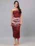 - The model with bust size 30", waist 25", hips 36" and height 5'8'' is wearing a size S.