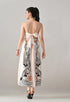 Turn heads in this chic ivory maxi dress featuring bold tropical leaf and floral prints in striking black and orange accents. Designed with a plunging neckline, adjustable spaghetti straps, and an elegant back-tie bow, it’s perfect for summer soirees and vacation escapes. Crafted in soft, breathable fabric for all-day comfort with effortless style.