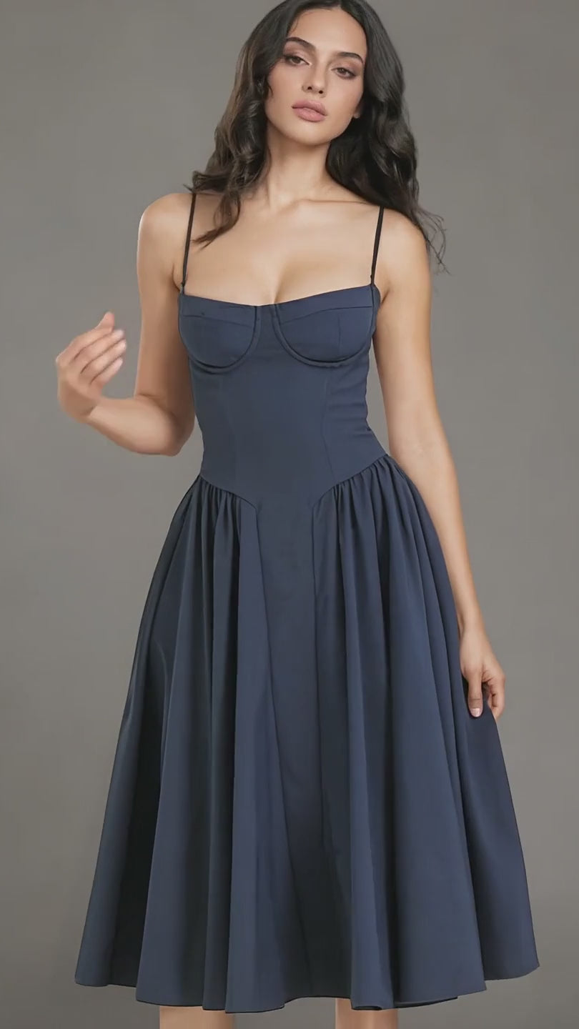 Step out in style with this waist fit and flare midi sundress, featuring a flattering V-shaped low waist with ruching and a distinctive flared hem. Perfect for any occasion—from sunny holidays to chic evening outings.