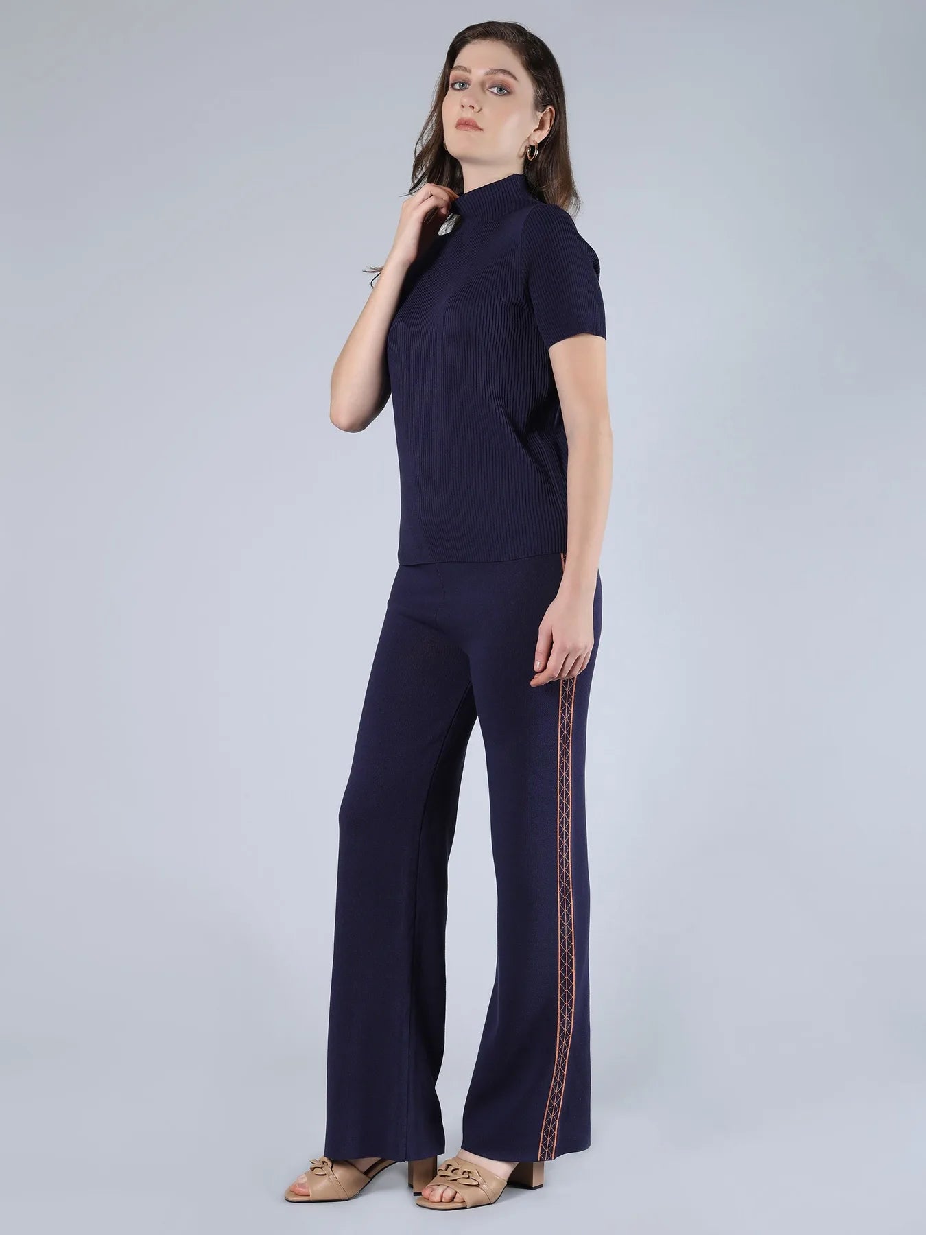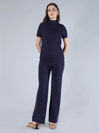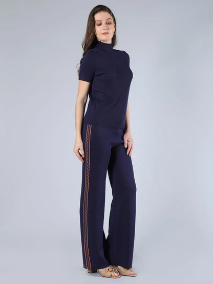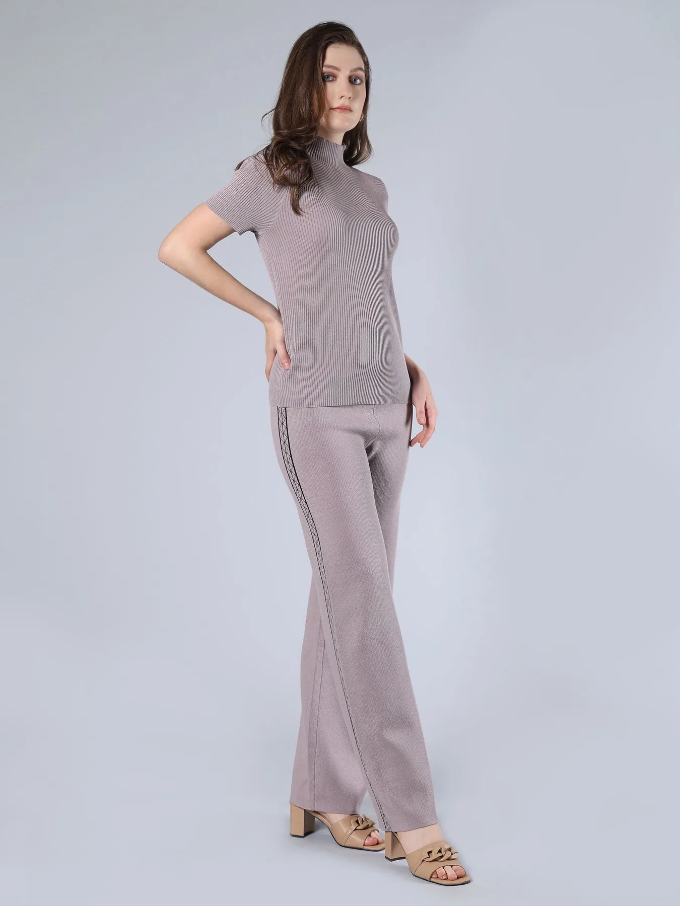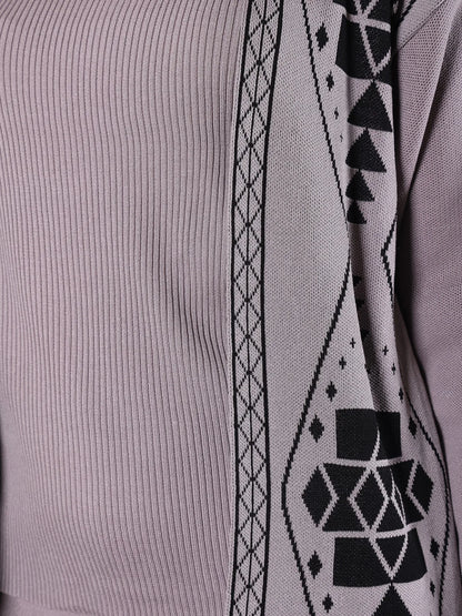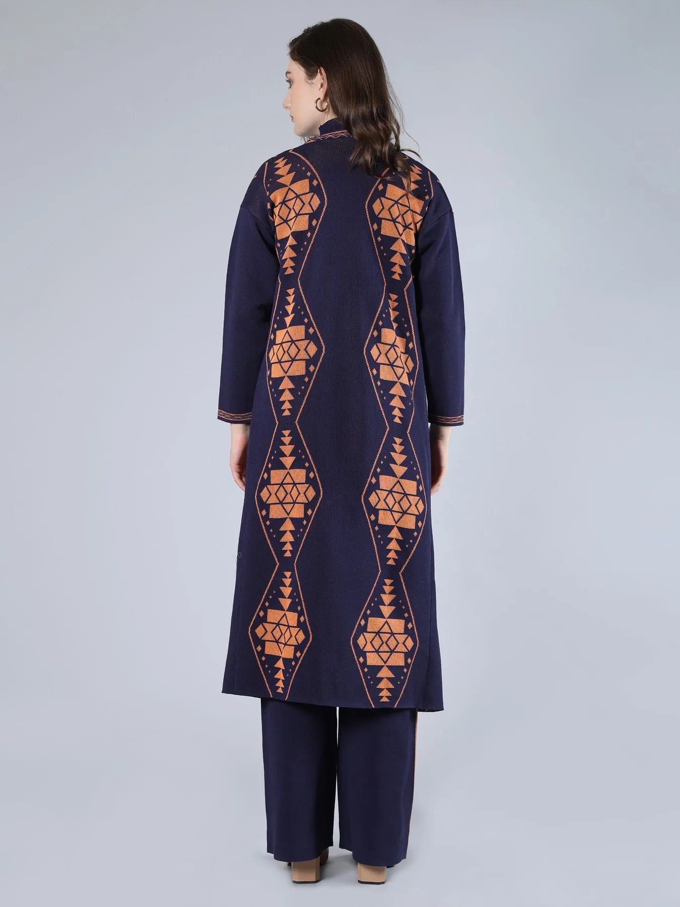 The Warm Knitted Three-Piece Set features a round neckline, long printed cardigan with full sleeves, and straight knitted pants, perfect for cozy autumn and winter wear. Crafted from stretchable material, it combines comfort and chic style for casual day wear or vacation outings.