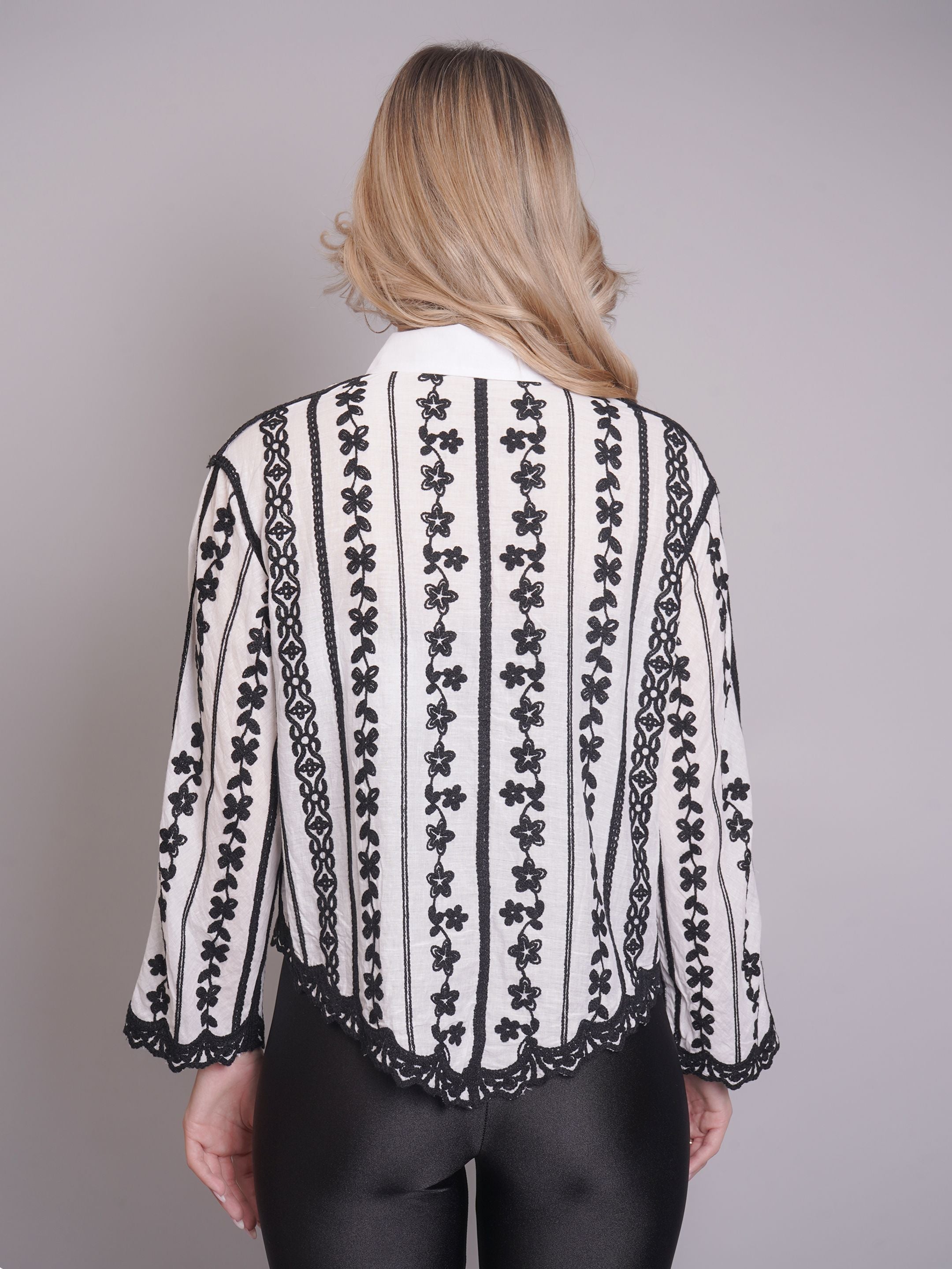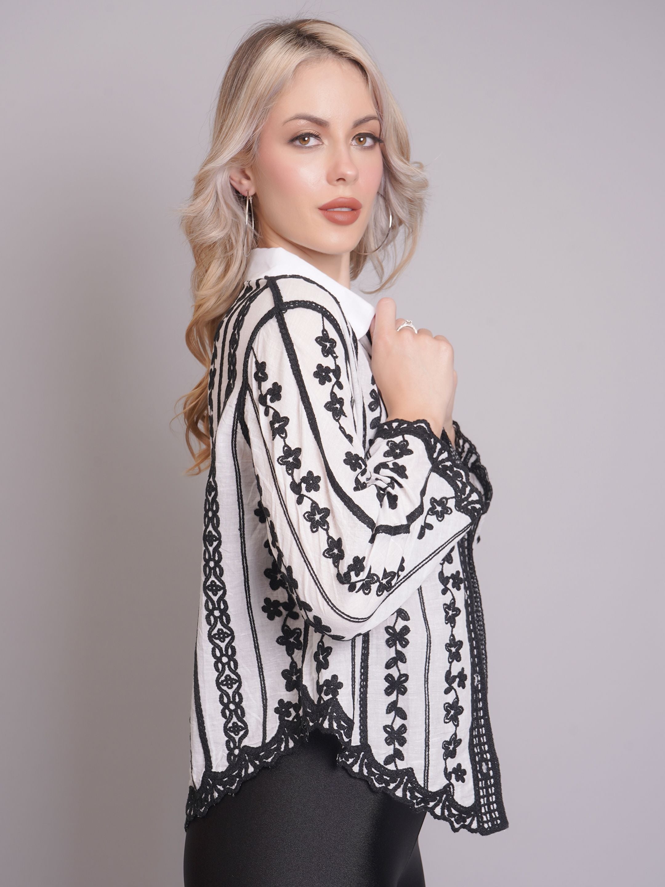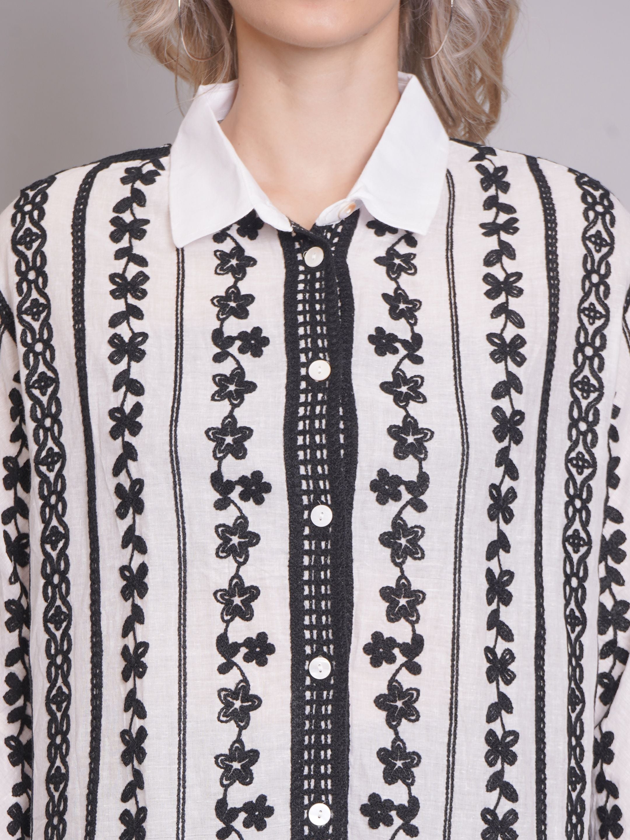 Introducing the Chain Stitch Embroidered Shirt – a versatile piece that is both trendy and elegant. Perfect for any occasion, from formal meetings to casual outings, this shirt features a stylish turn-down collar, drop shoulders, and long comfortable sleeves.