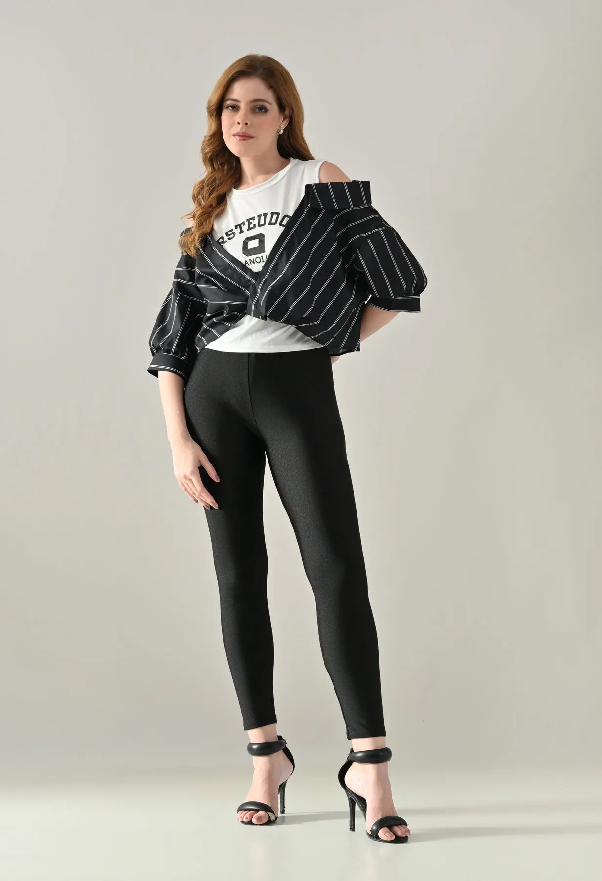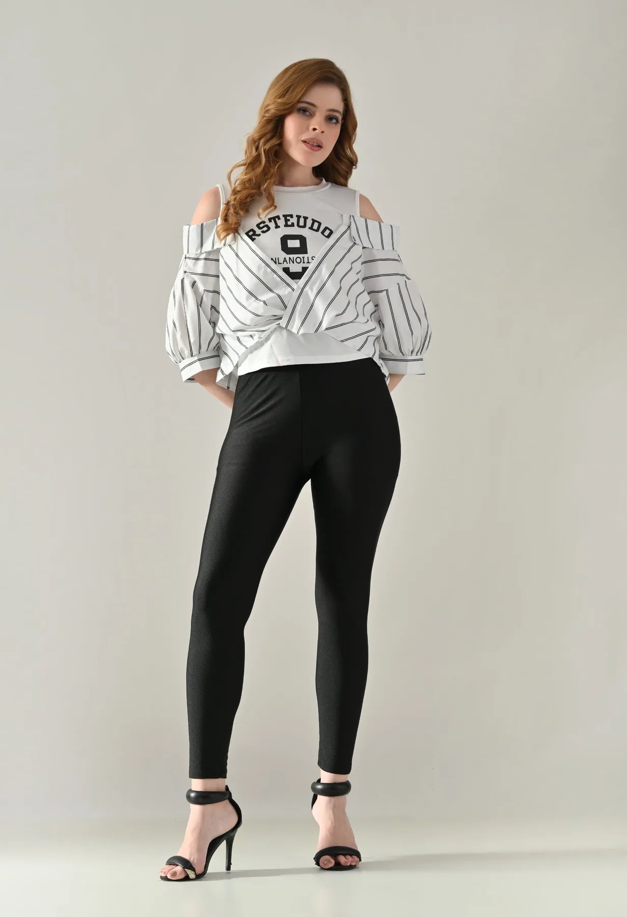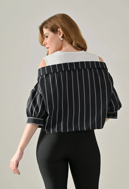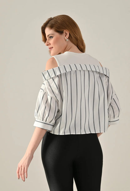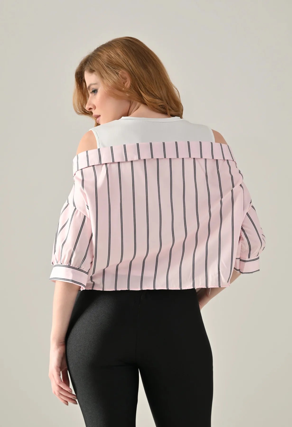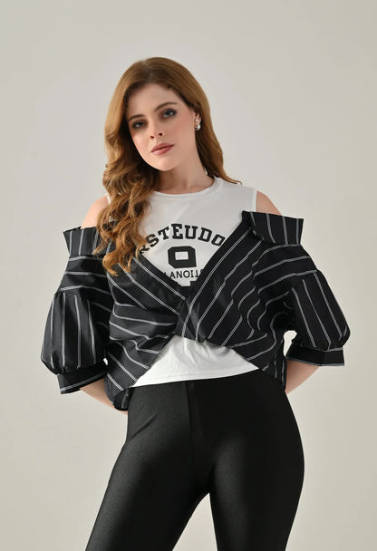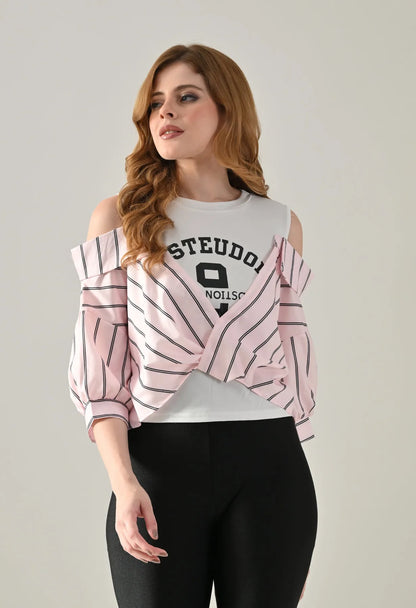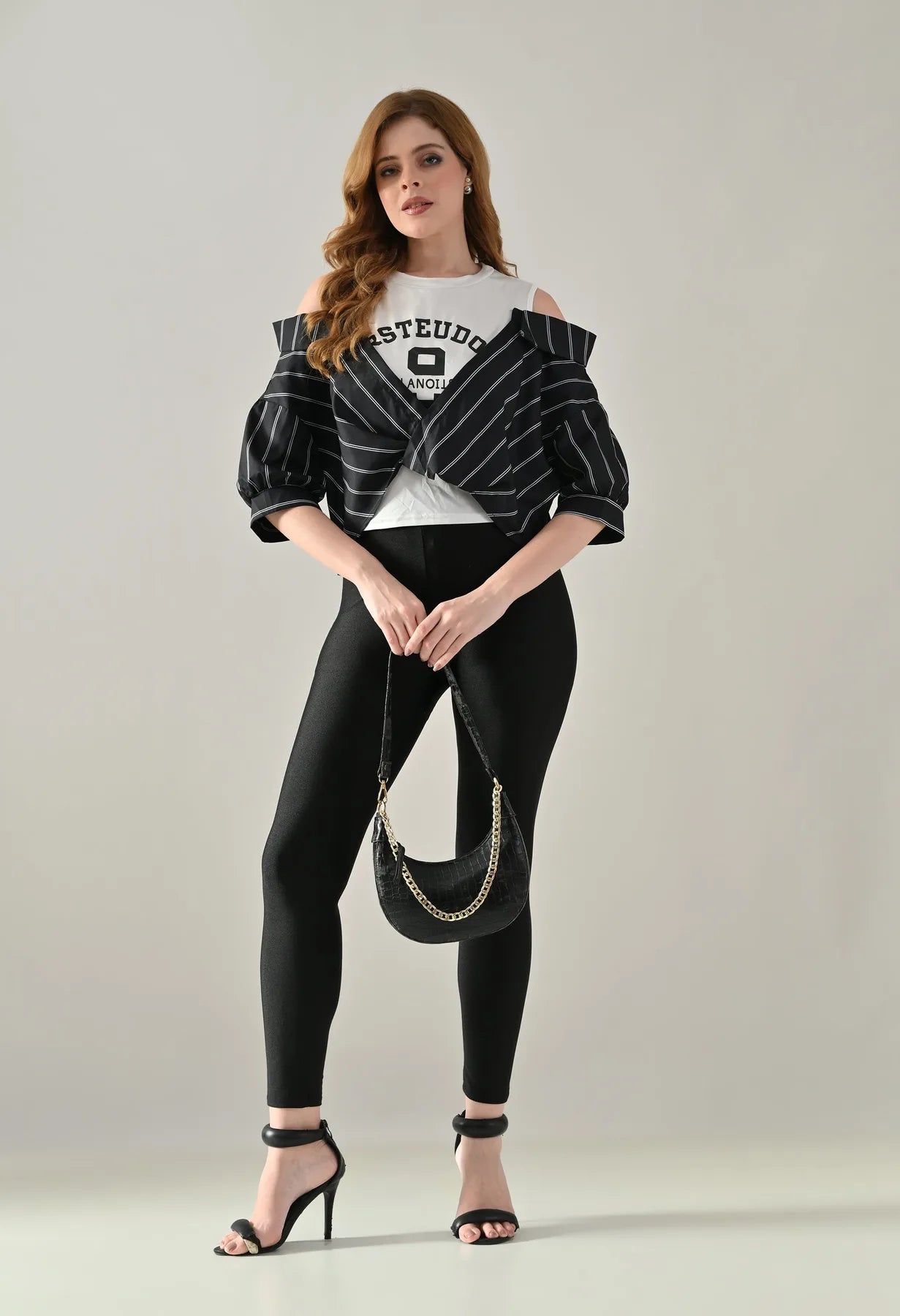This unique design blends casual comfort with a fashionable twist. The inner layer comes with a trendy printed T-shirt, while the outer layer mimics a striped shirt for a smart layered effect. Featuring a classic round neck and three-fourth sleeves, it’s perfect for an effortlessly stylish everyday look or a polished street-style vibe.