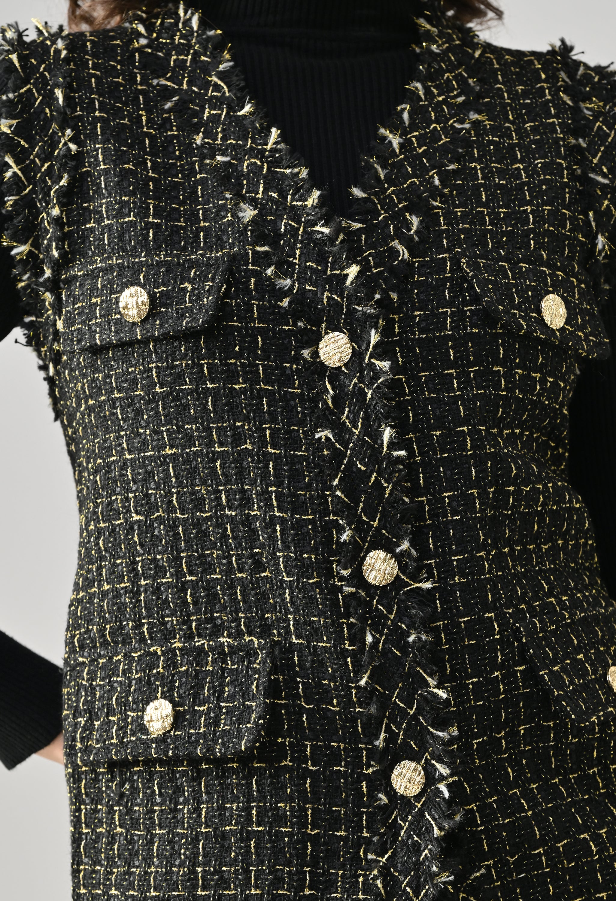 • Sleeveless non-stretchable tweed vest