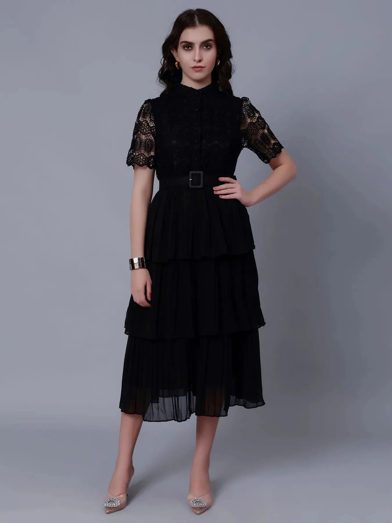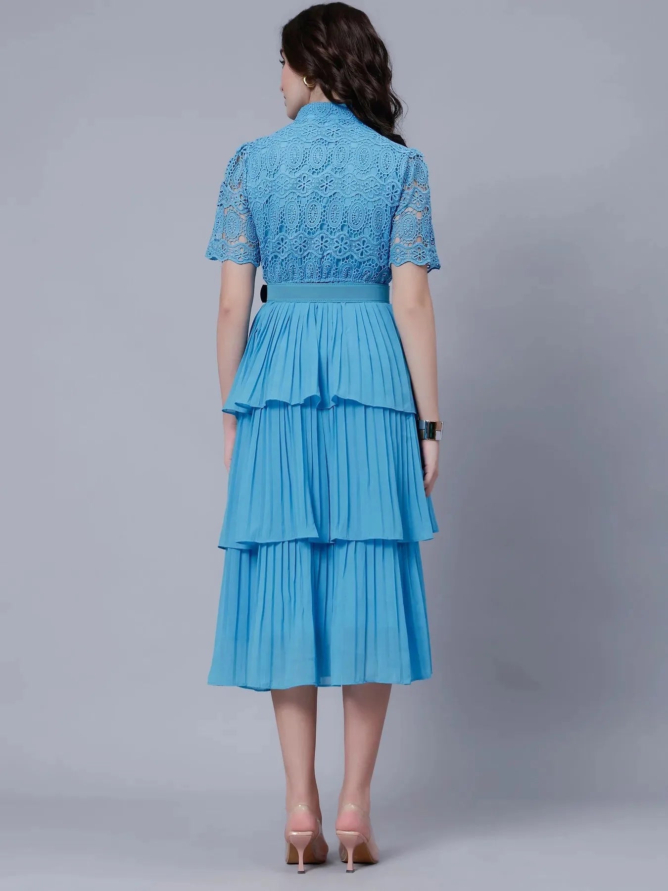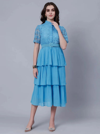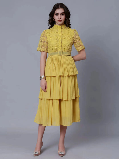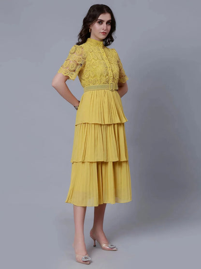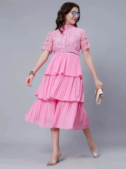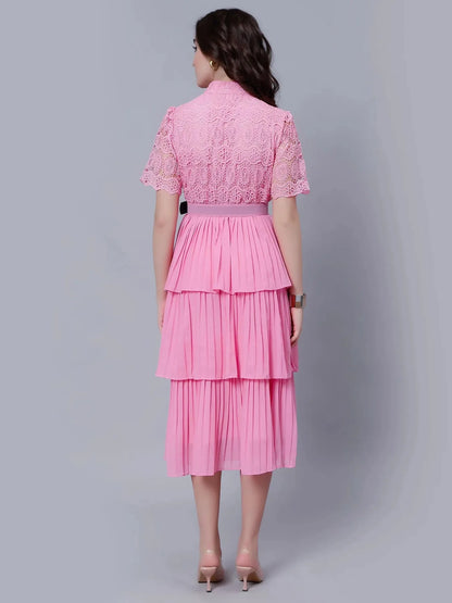Lace Patchwork Pleated Dress