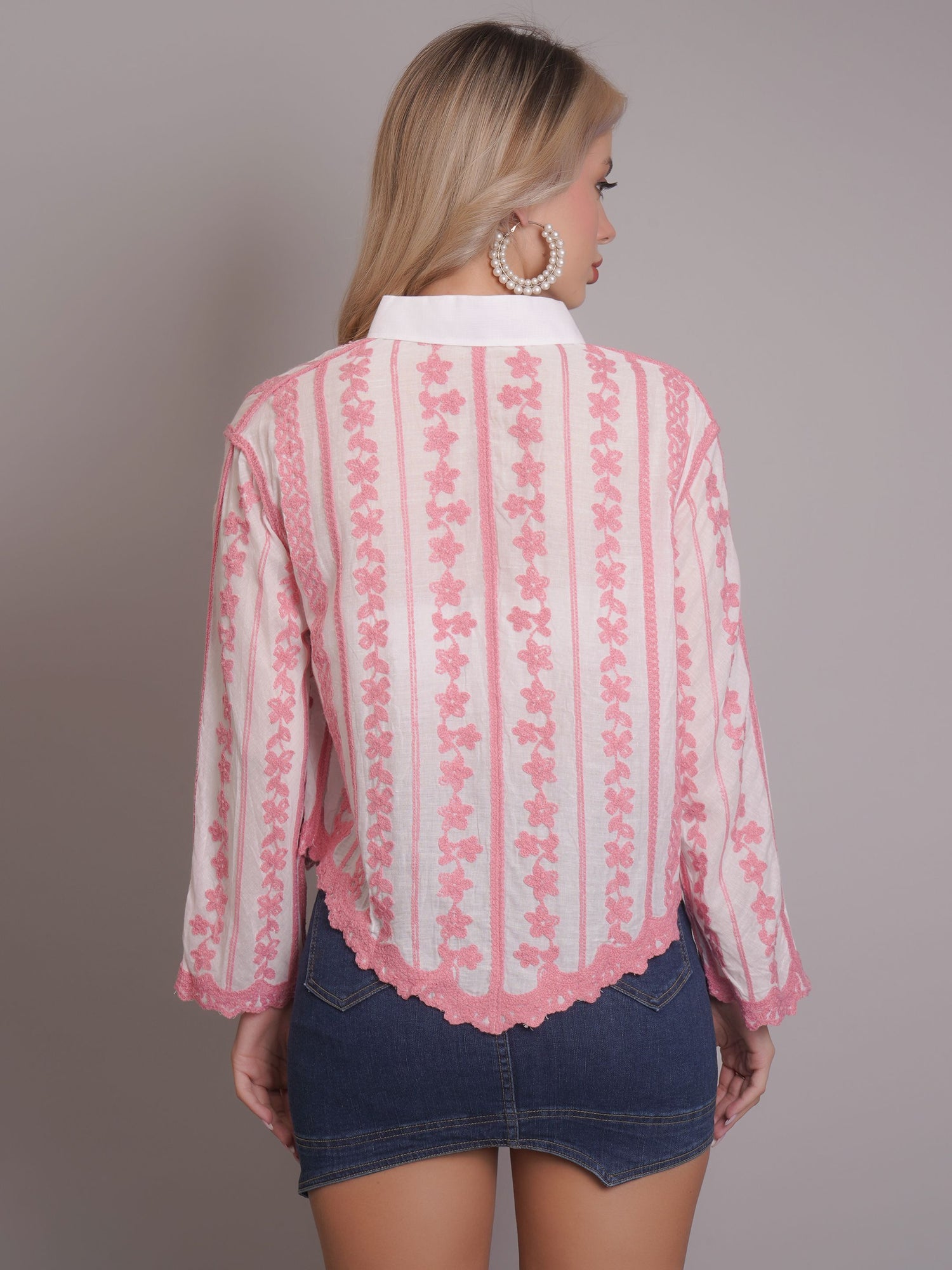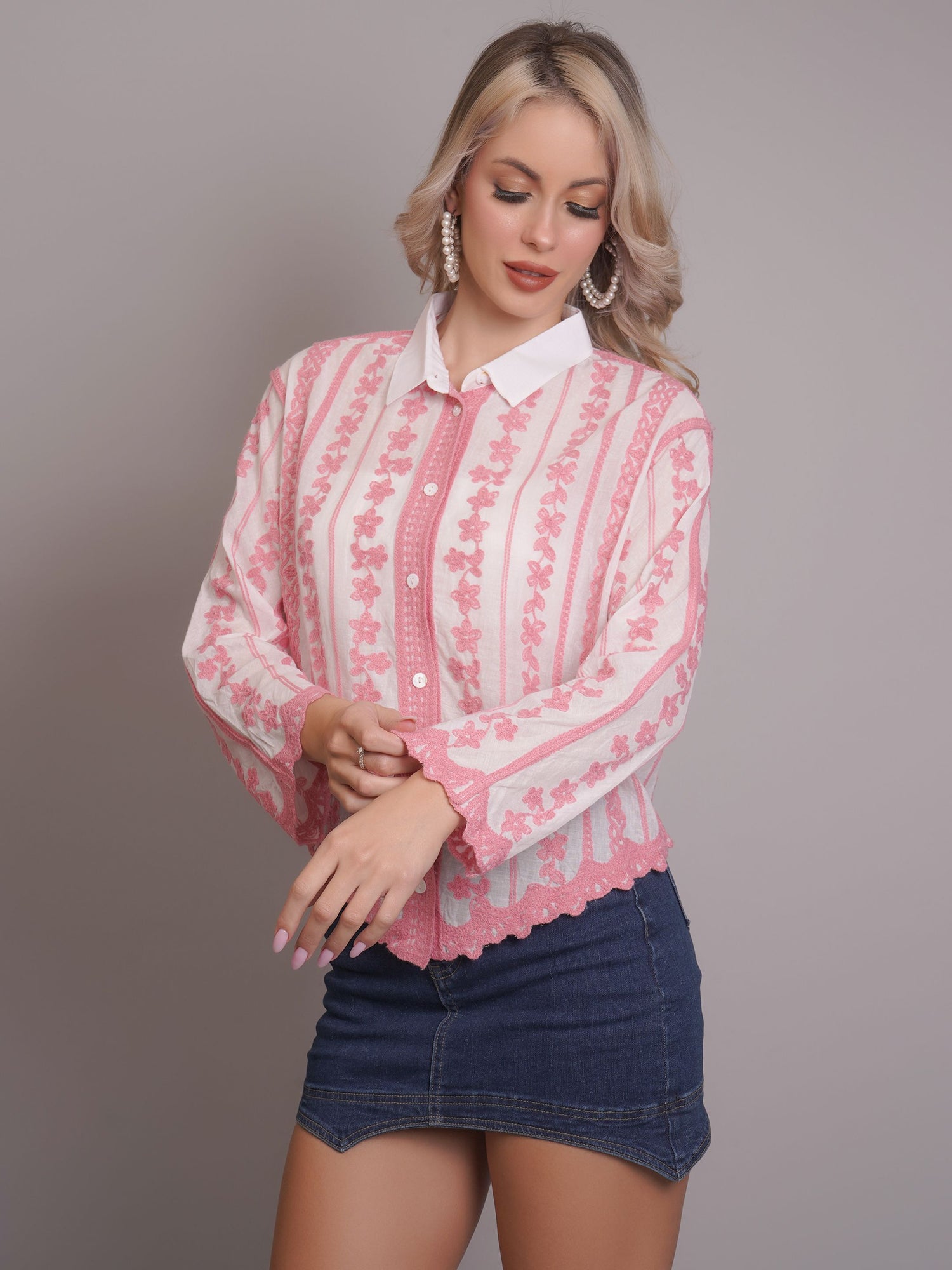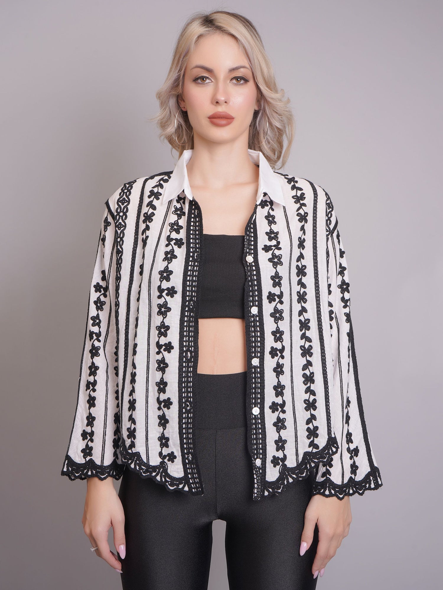 Introducing the Chain Stitch Embroidered Shirt – a versatile piece that is both trendy and elegant. Perfect for any occasion, from formal meetings to casual outings, this shirt features a stylish turn-down collar, drop shoulders, and long comfortable sleeves.