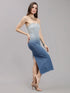 - The model with bust size 30", waist 26", hips 36" and height 5'8'' is wearing a size M.