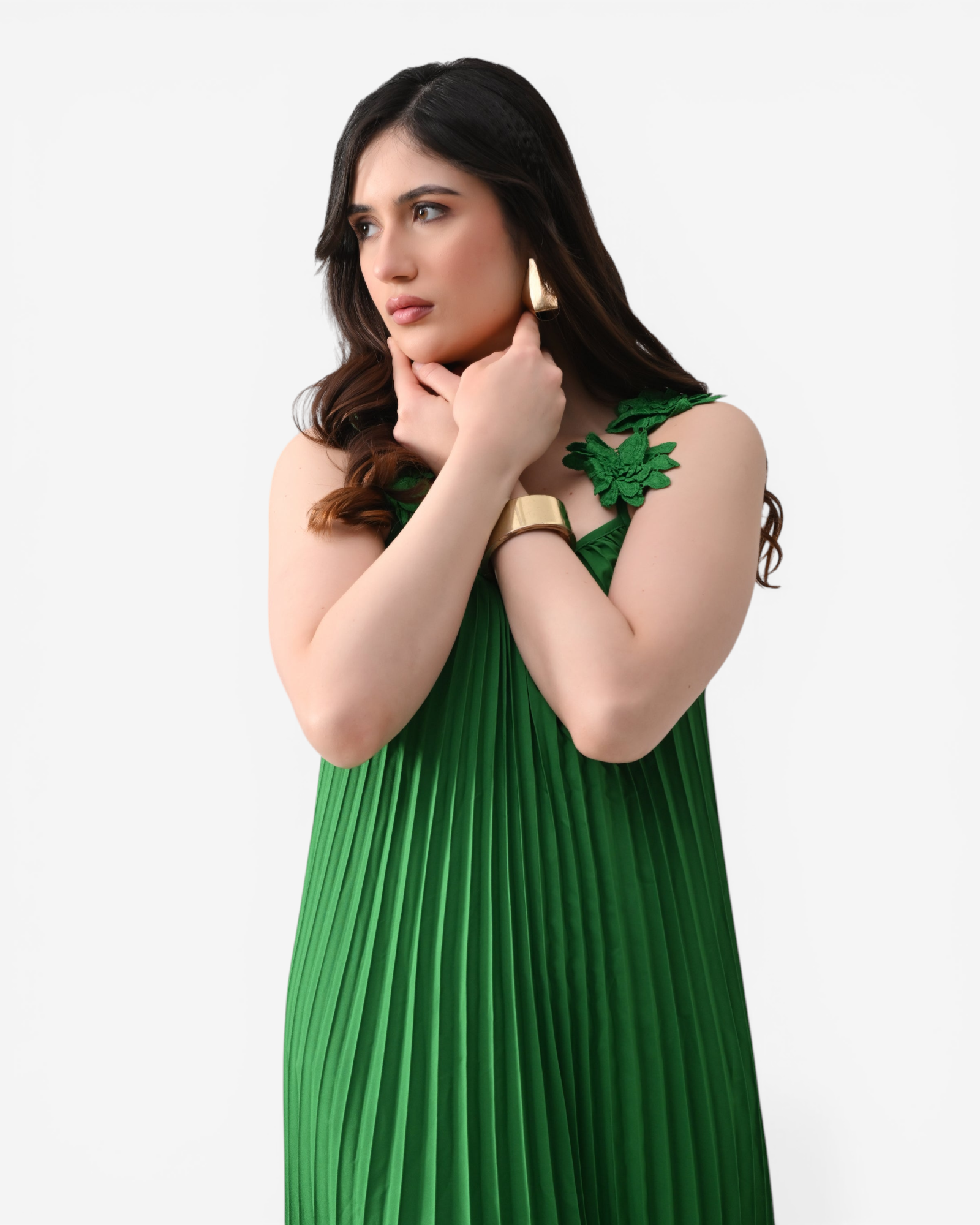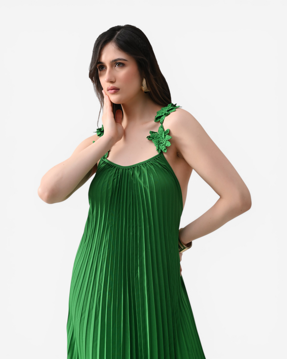 - Material: Pleated Crepe