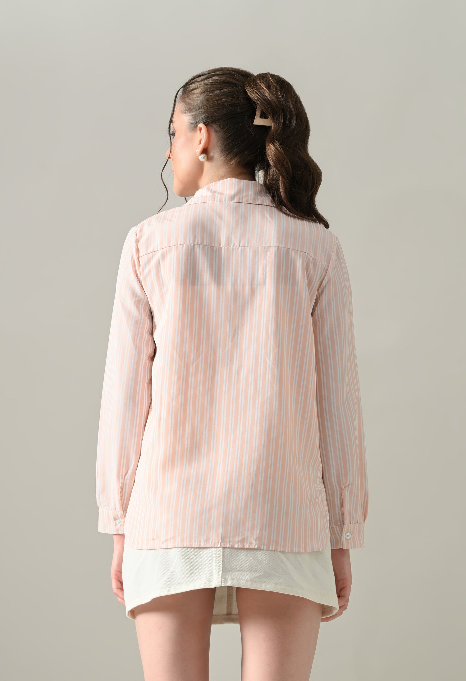 Peach-and-white pinstripes for a soft, versatile look