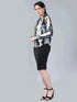 • The model with bust size 36", waist 27", hips 37.5" and height 5'7'' is wearing a size S.