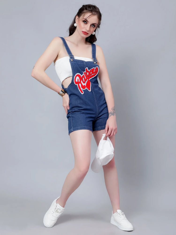 Embroidery Denim Playsuit
