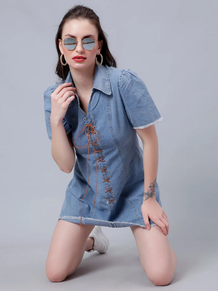 Lace Up Denim Short Dress