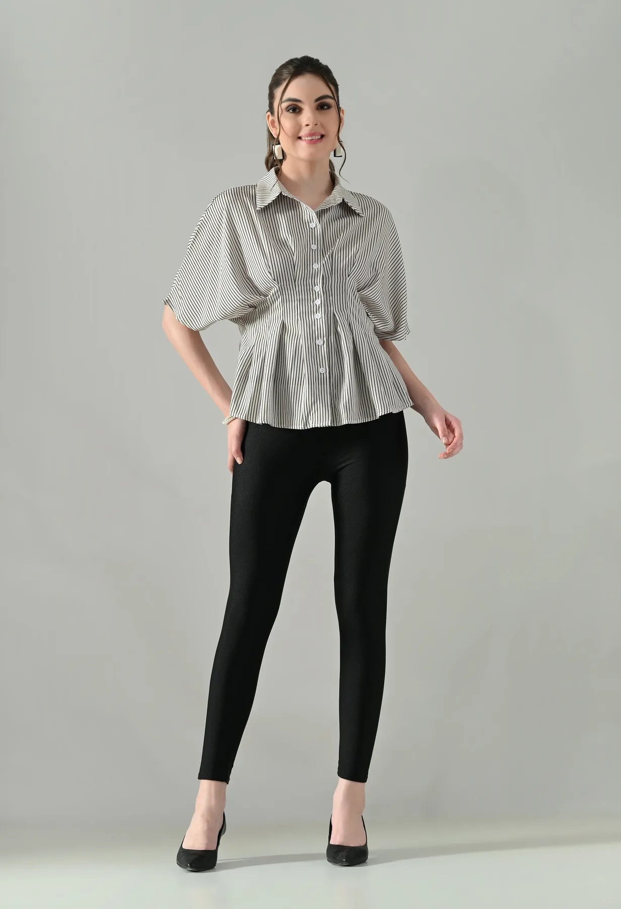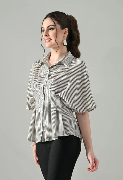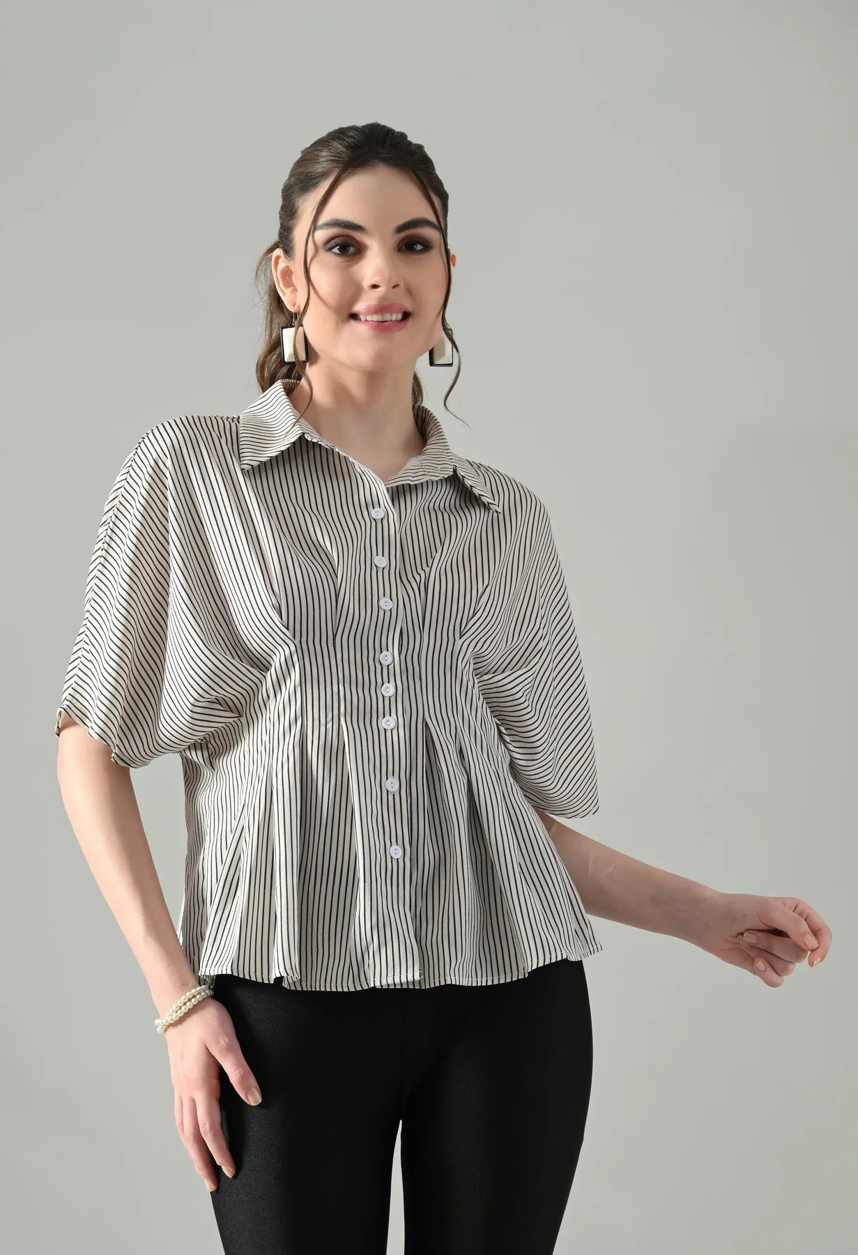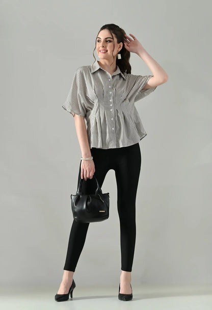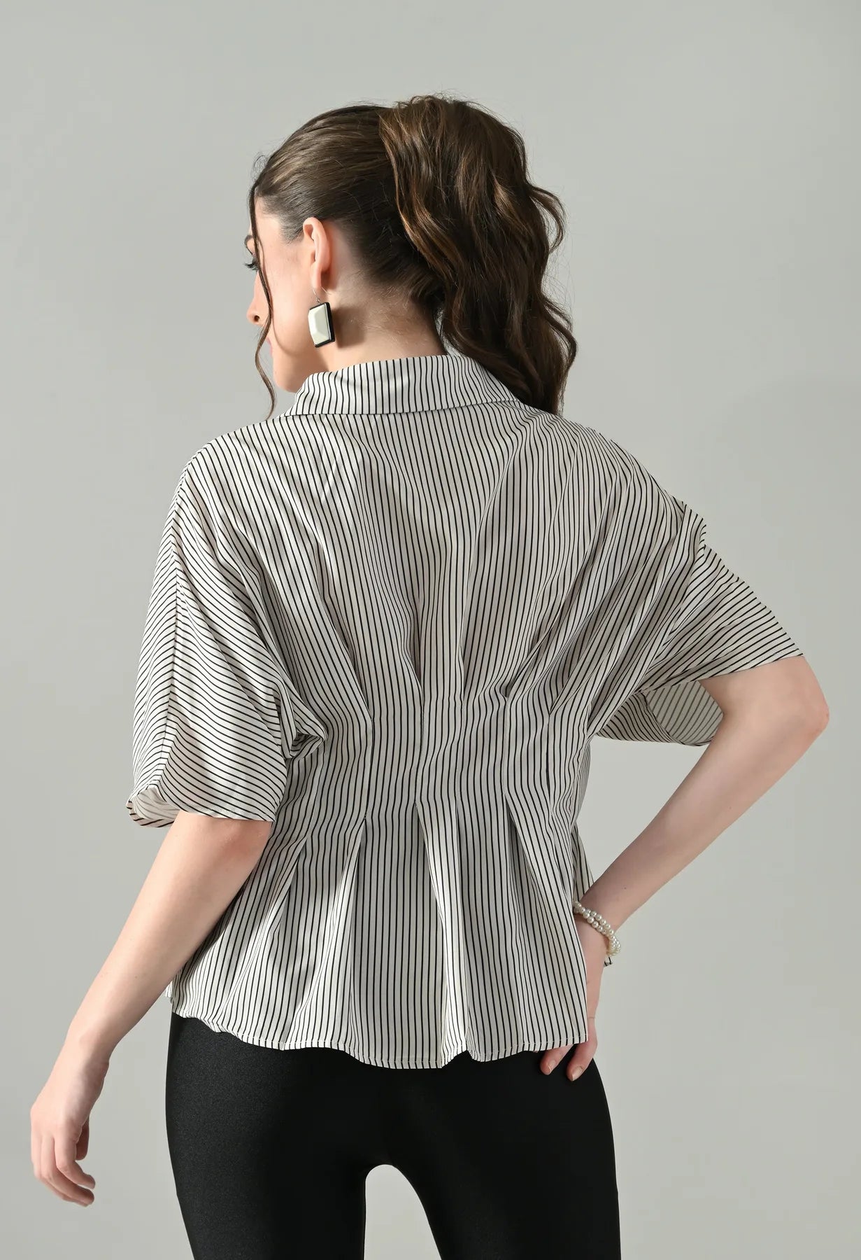 Effortless chic meets flattering structure in the Blush Stripe Cinched Shirt. Designed with soft blush-and-white pinstripes, this piece elevates the classic button-down with a feminine twist. The cinched waist creates a graceful silhouette, while relaxed dolman sleeves bring a touch of ease and modernity. Perfect for work-to-weekend dressing, it’s your go-to when you want polish with comfort.