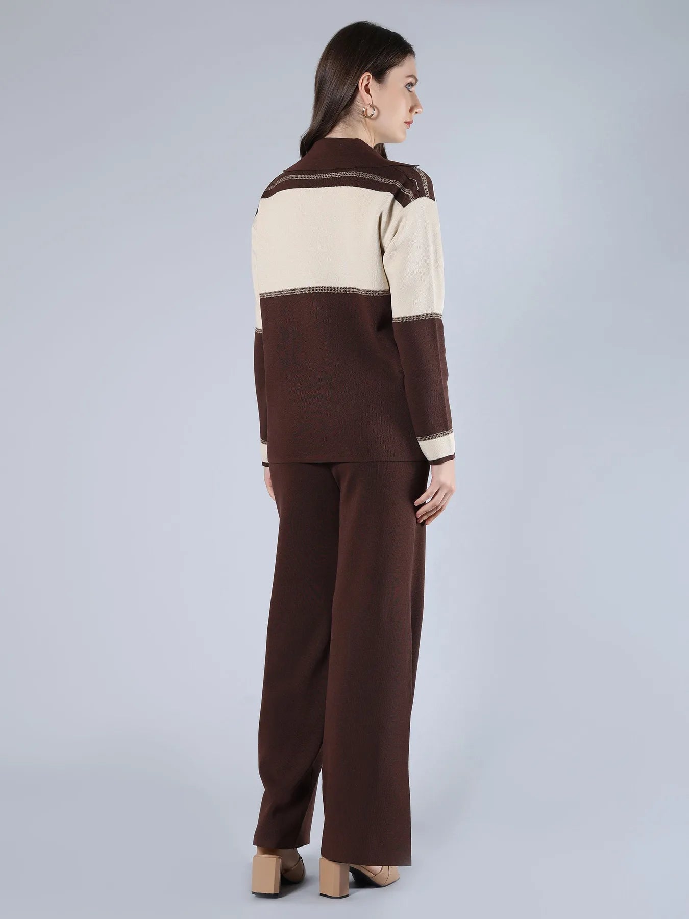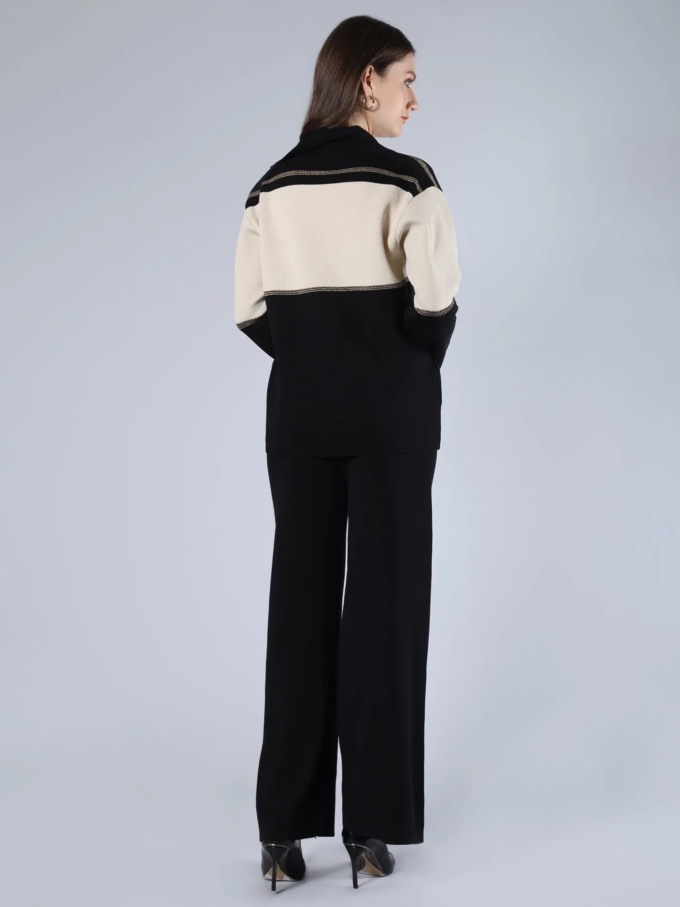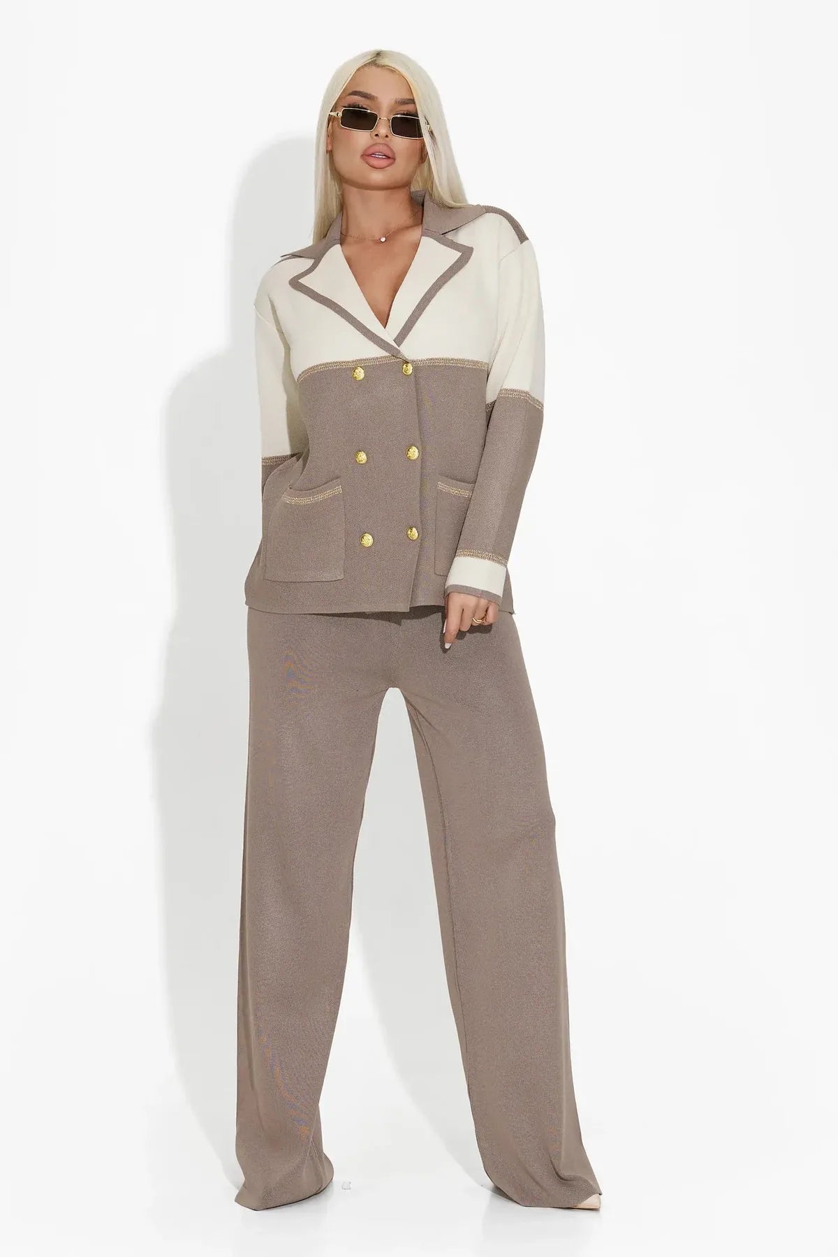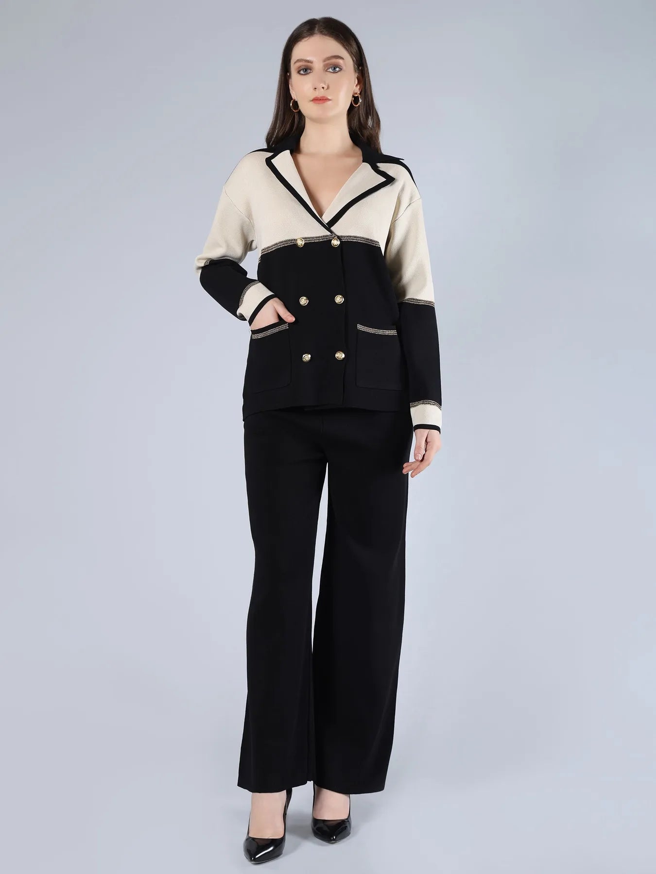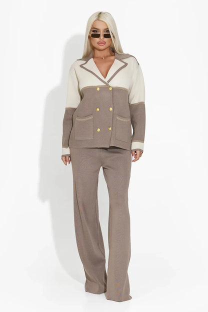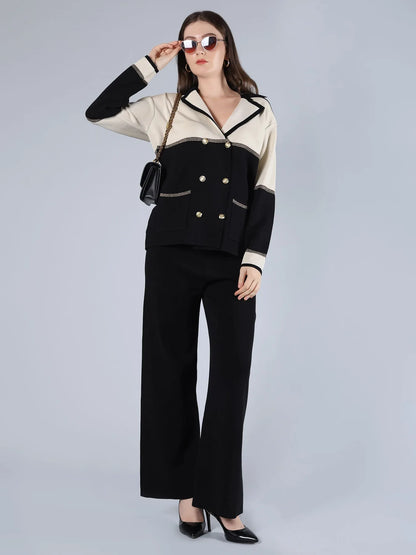 Elevate your winter wardrobe with the Buttoned Knit Cardigan & Pant Set. Featuring a collared neckline, double-breasted button design, and relaxed wide-leg pants with an elastic waistband, this chic set offers both style and comfort with its stretchable fabric.