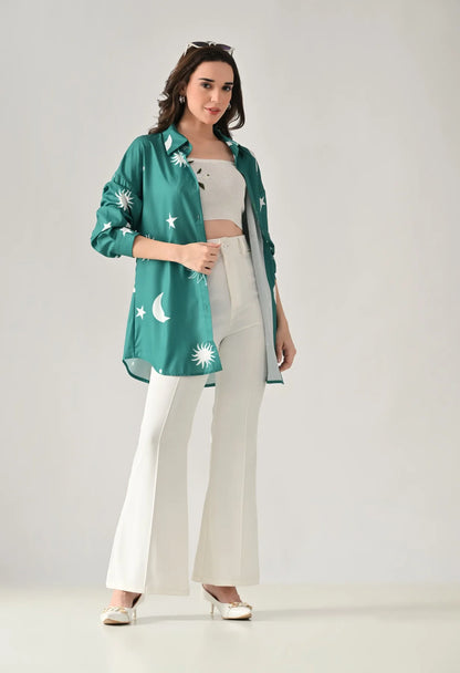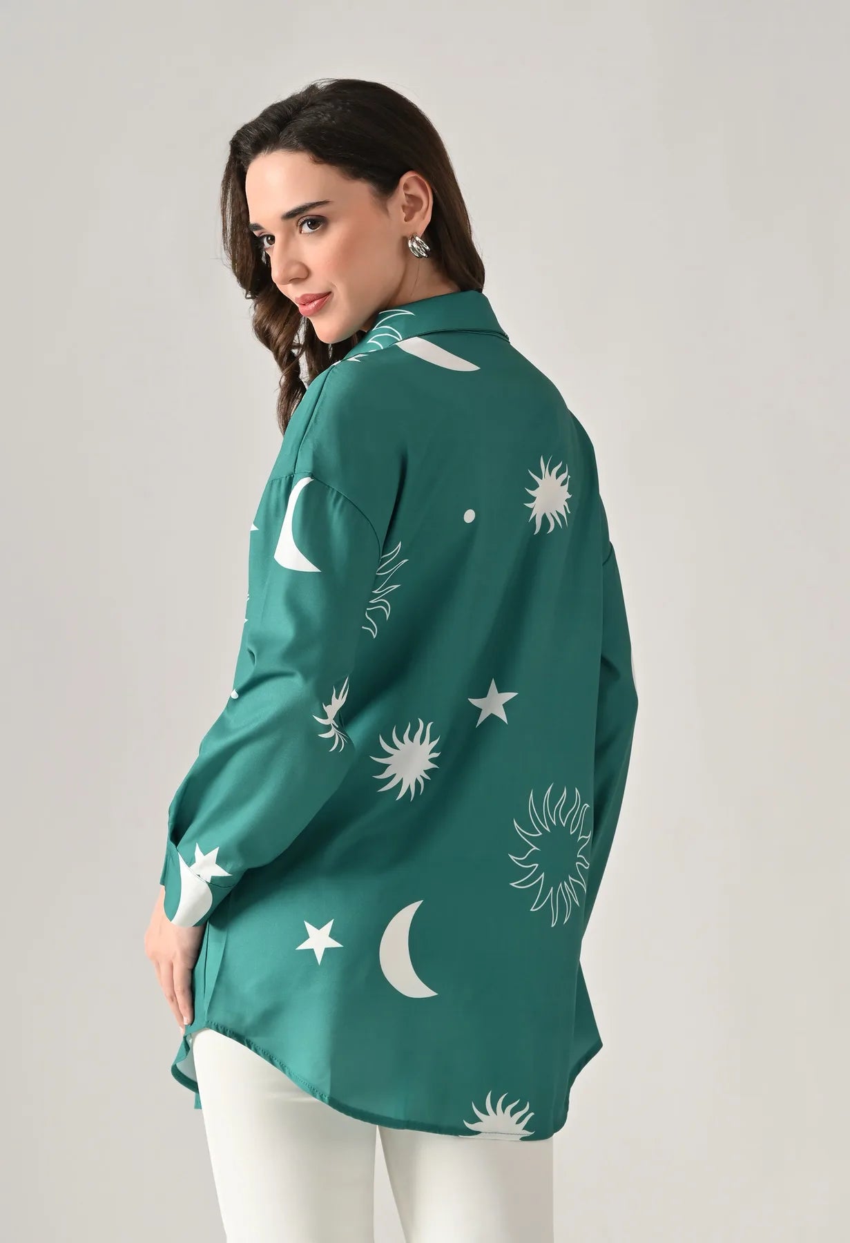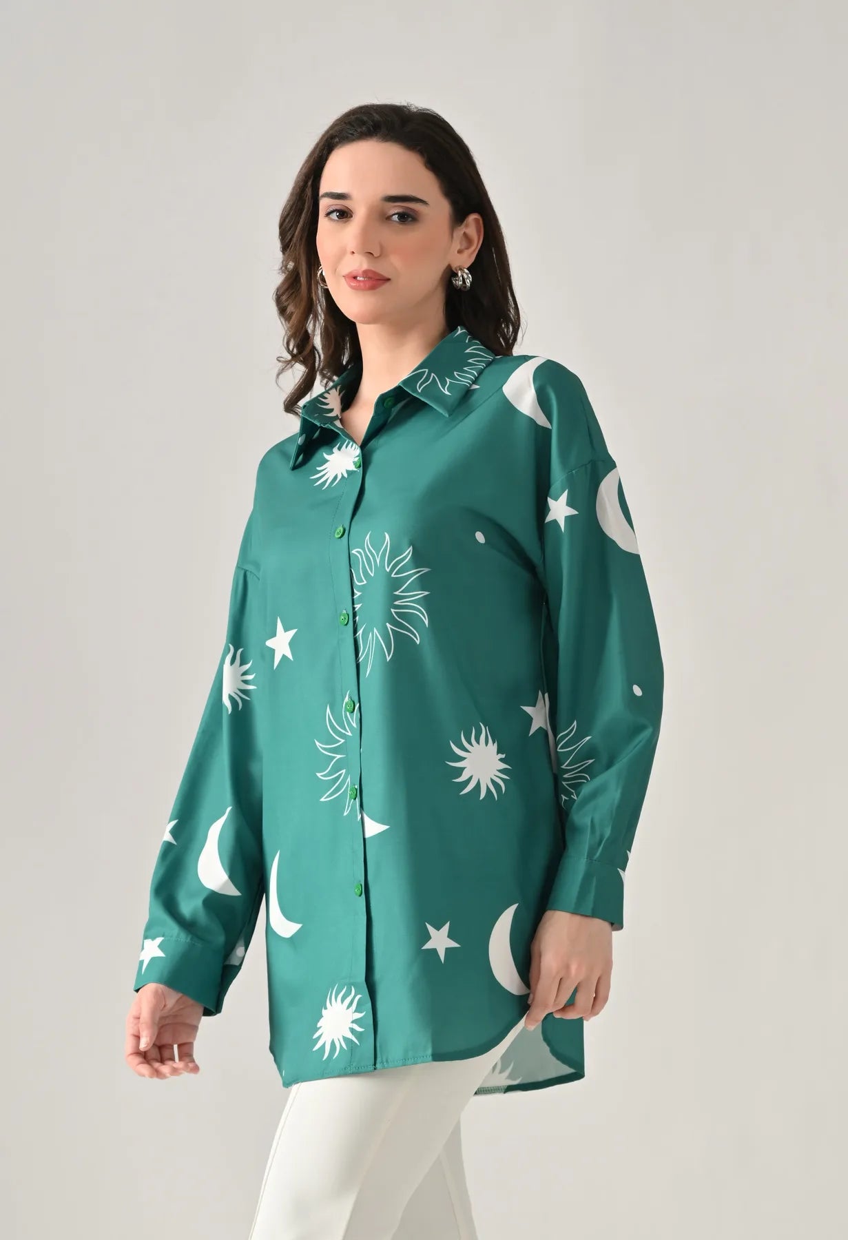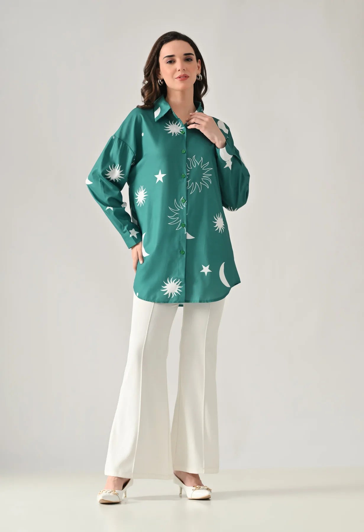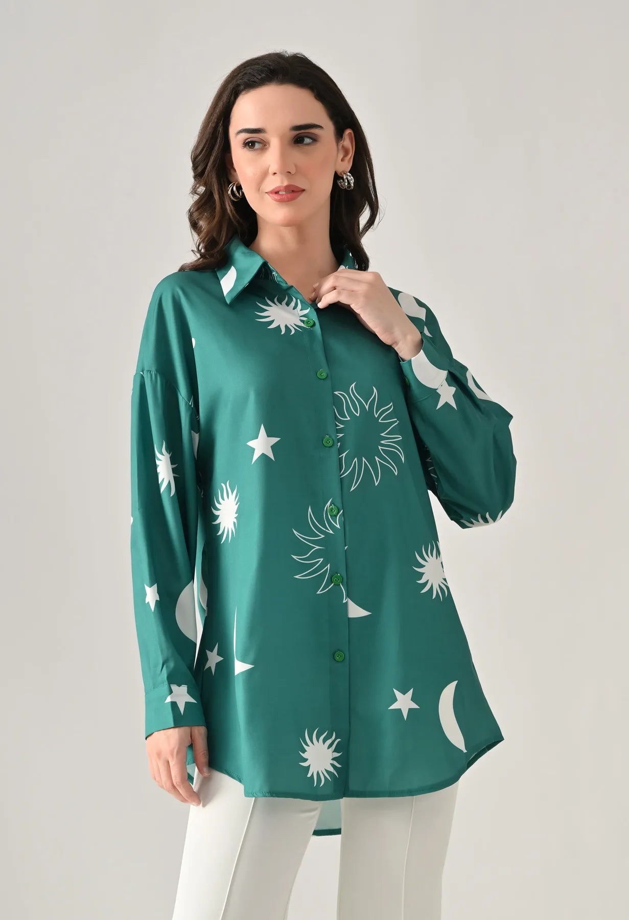 Easy, breezy, and bold—this oversized cotton tunic comes in a pink base with striking red sun-inspired prints. Featuring a collared neckline, button-up front, and scooped hemline that’s shorter on the sides, it blends comfort with statement style. The fabric and relaxed fit make it perfect for both layering and lounging.