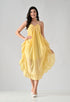Light as sunshine, bold like summer. This flared halter dress features a gathered bust, subtle check texture, and a dramatic high-low ruffle hem. Whether you're lounging by the coast or strolling through city heat, this piece brings an easy, breezy vibe with a touch of drama.