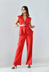 This Classy Belted Two-Piece Set features a sleeveless top with a deep V-neckline and wide-leg tailored pants. The matching tie belt adds sophistication, crafted from non-stretchable fabric for a sleek, elegant look.