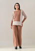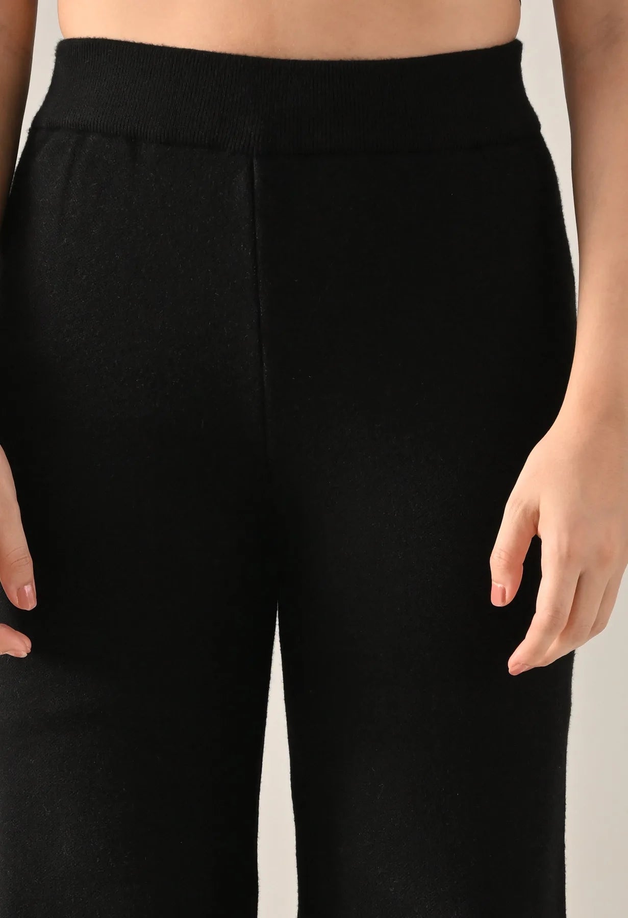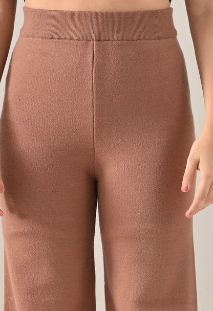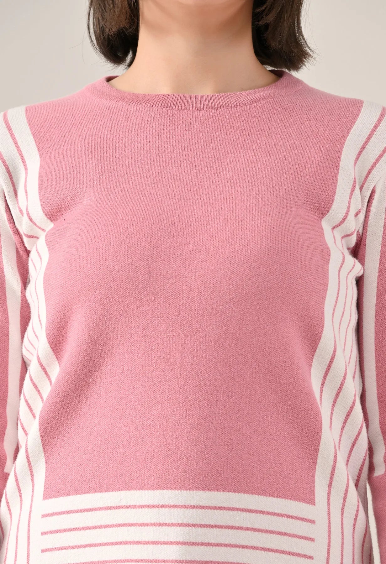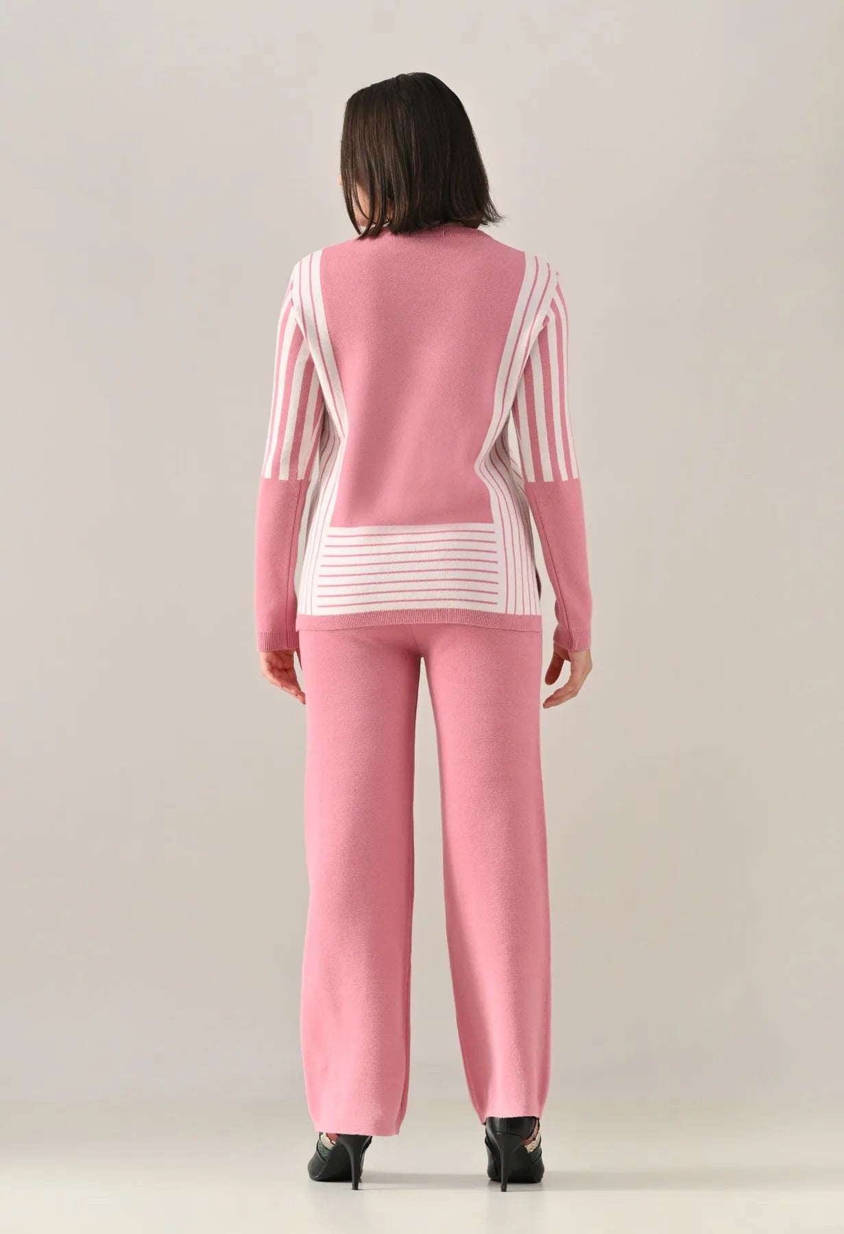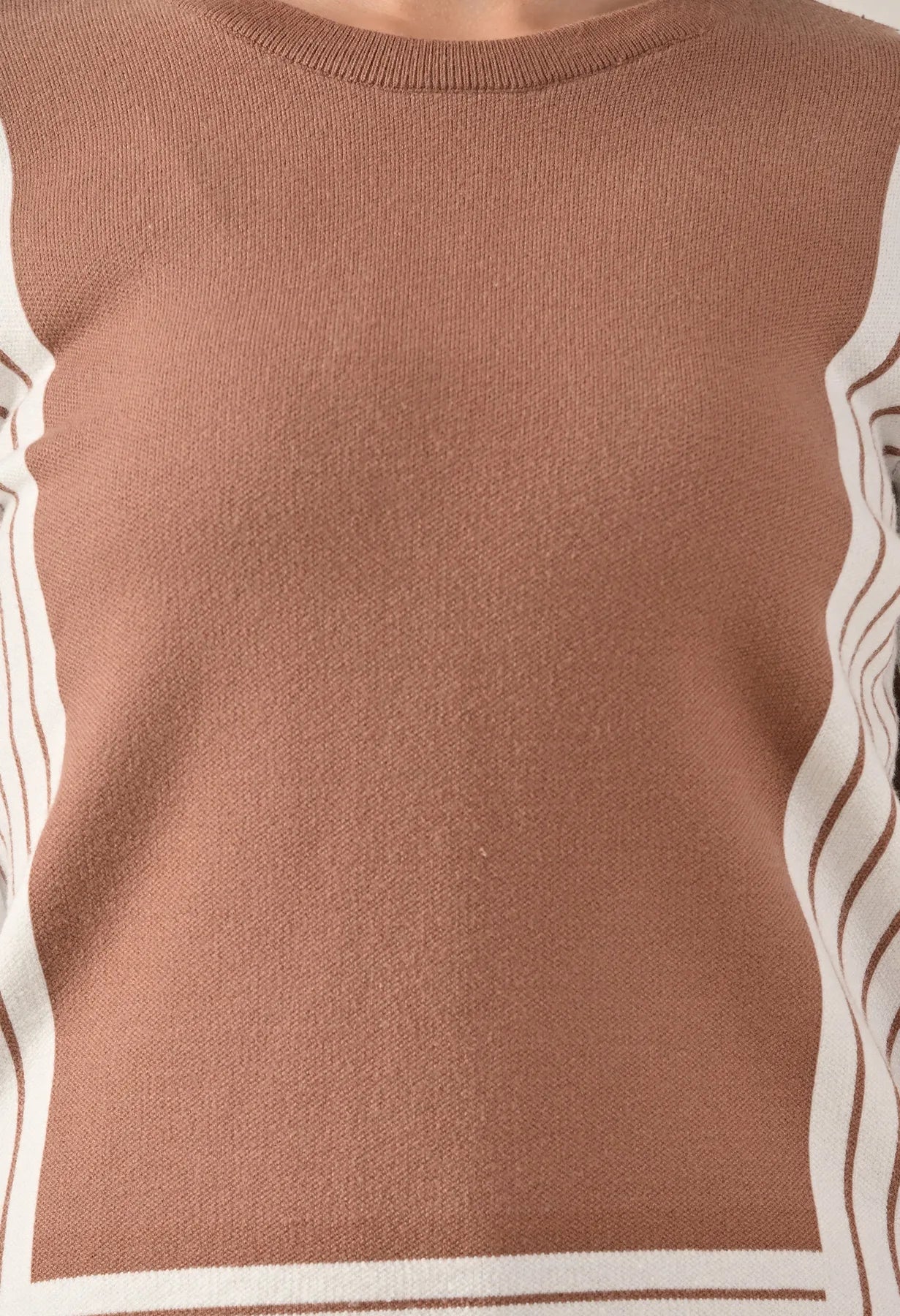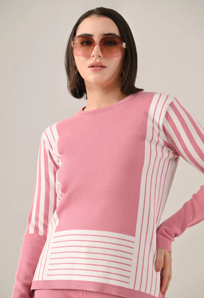 Elevate your everyday look with this sweater-knitted co-ord set, blending sleek design with cozy comfort. The top features a round neckline with rib detailing, long fitted sleeves, and a regular length enhanced with side slits for ease of movement. Ribbed hem and sleeve openings add a neat, structured finish. The coordinated lower comes with a broad elasticated waistband and a straight, comfortable fit, showcasing a white stripe pattern on the top that adds a modern, sporty touch. Made from soft, stretchable fabric, this set ensures a perfect balance of style, warmth, and all-day comfort.