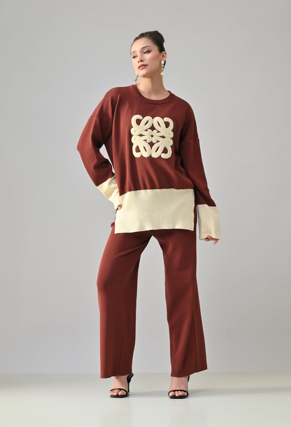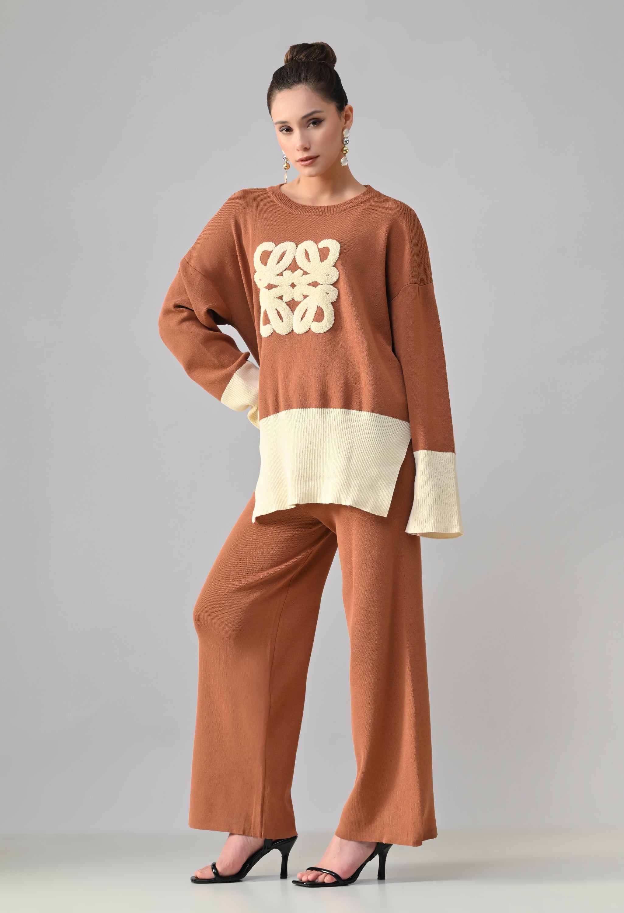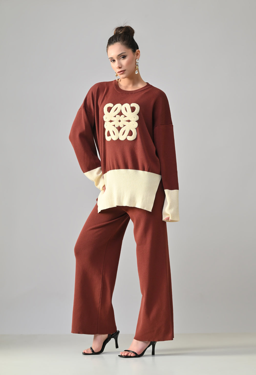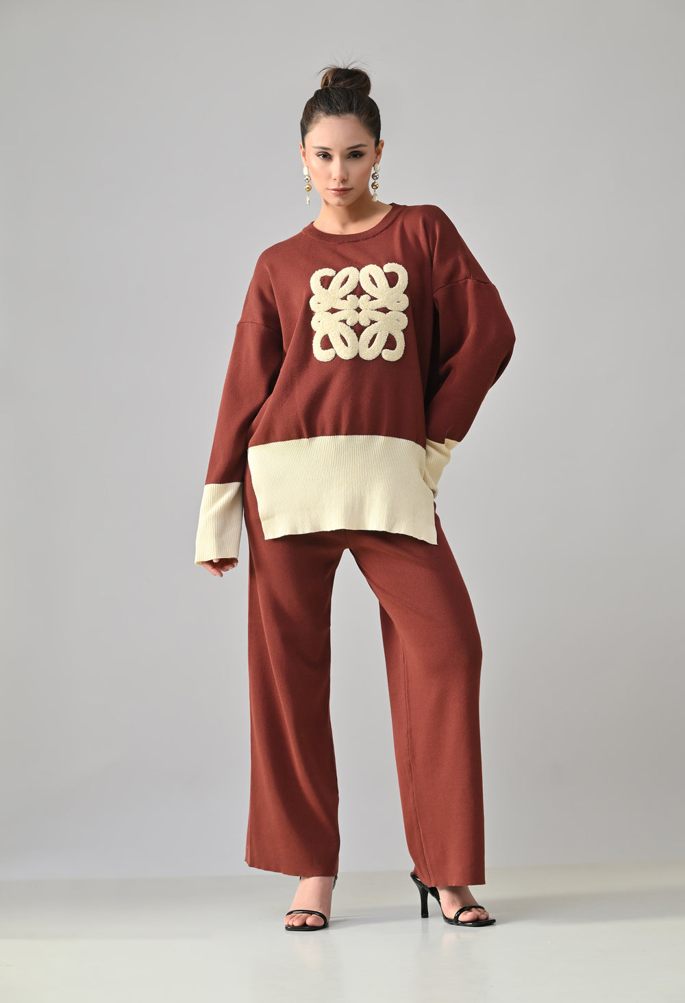 Elevate your style with our chic Colorblock Knitted Two-Piece Set – perfect for autumn and winter. Featuring a round neckline, side-slit top, and elasticated waistband pants, it’s your go-to for casual days, cozy evenings, or holiday lounging
