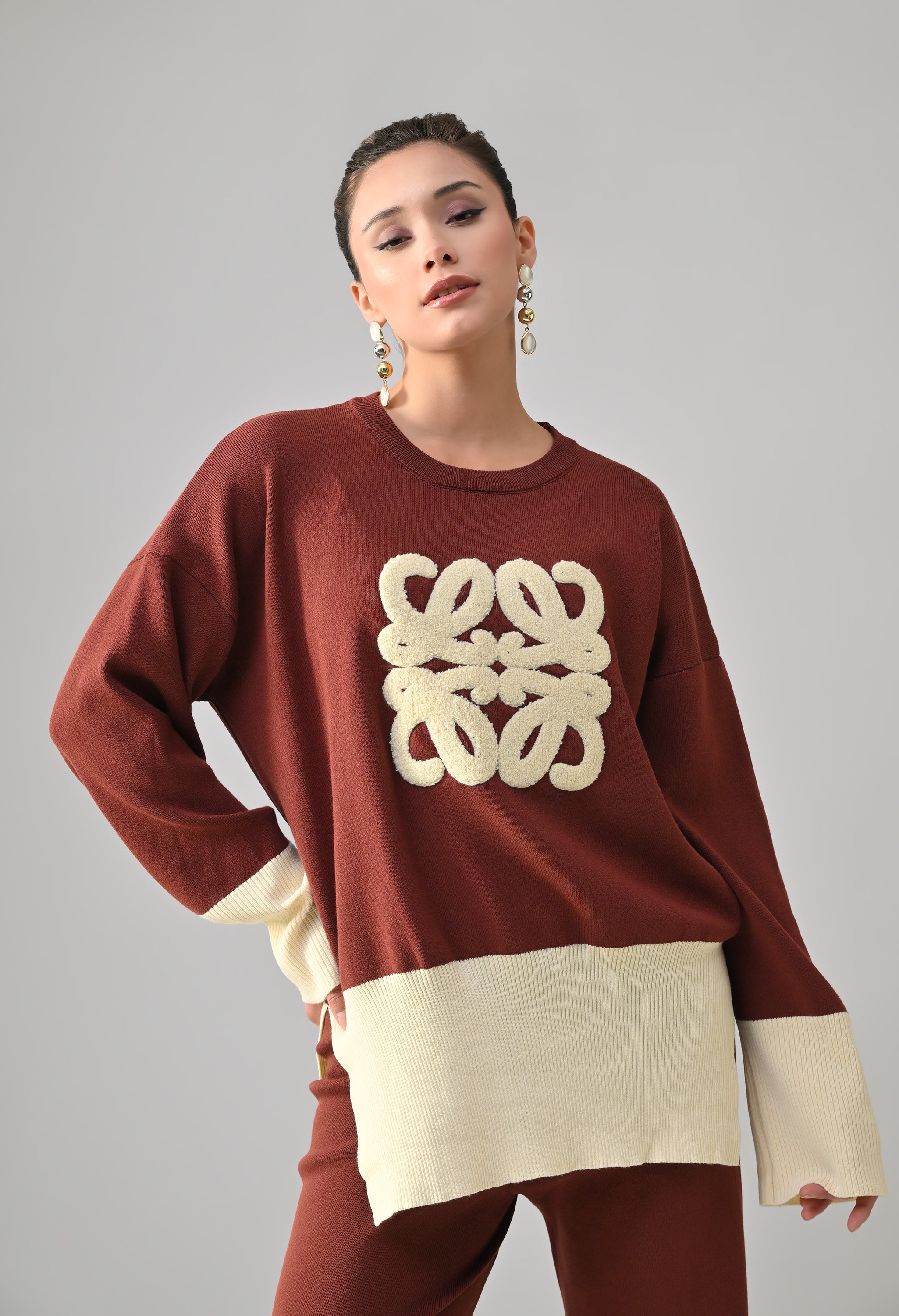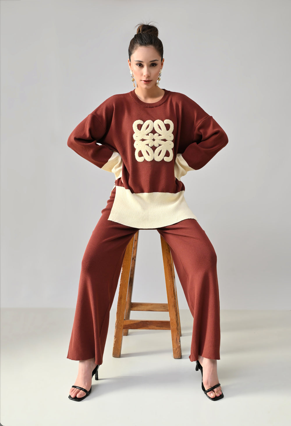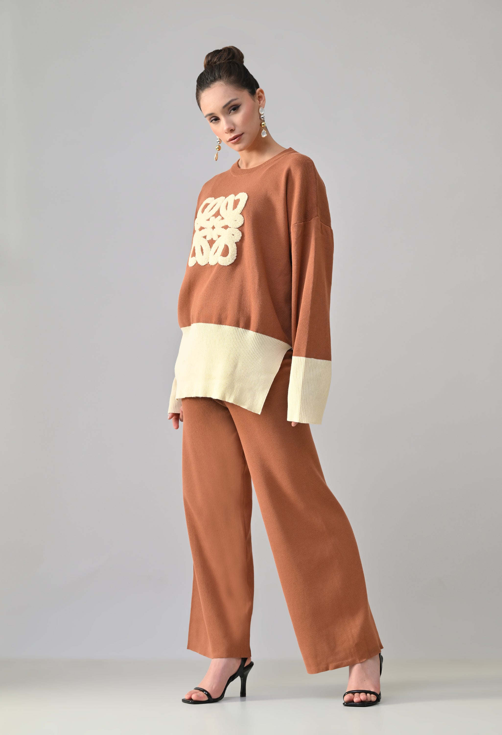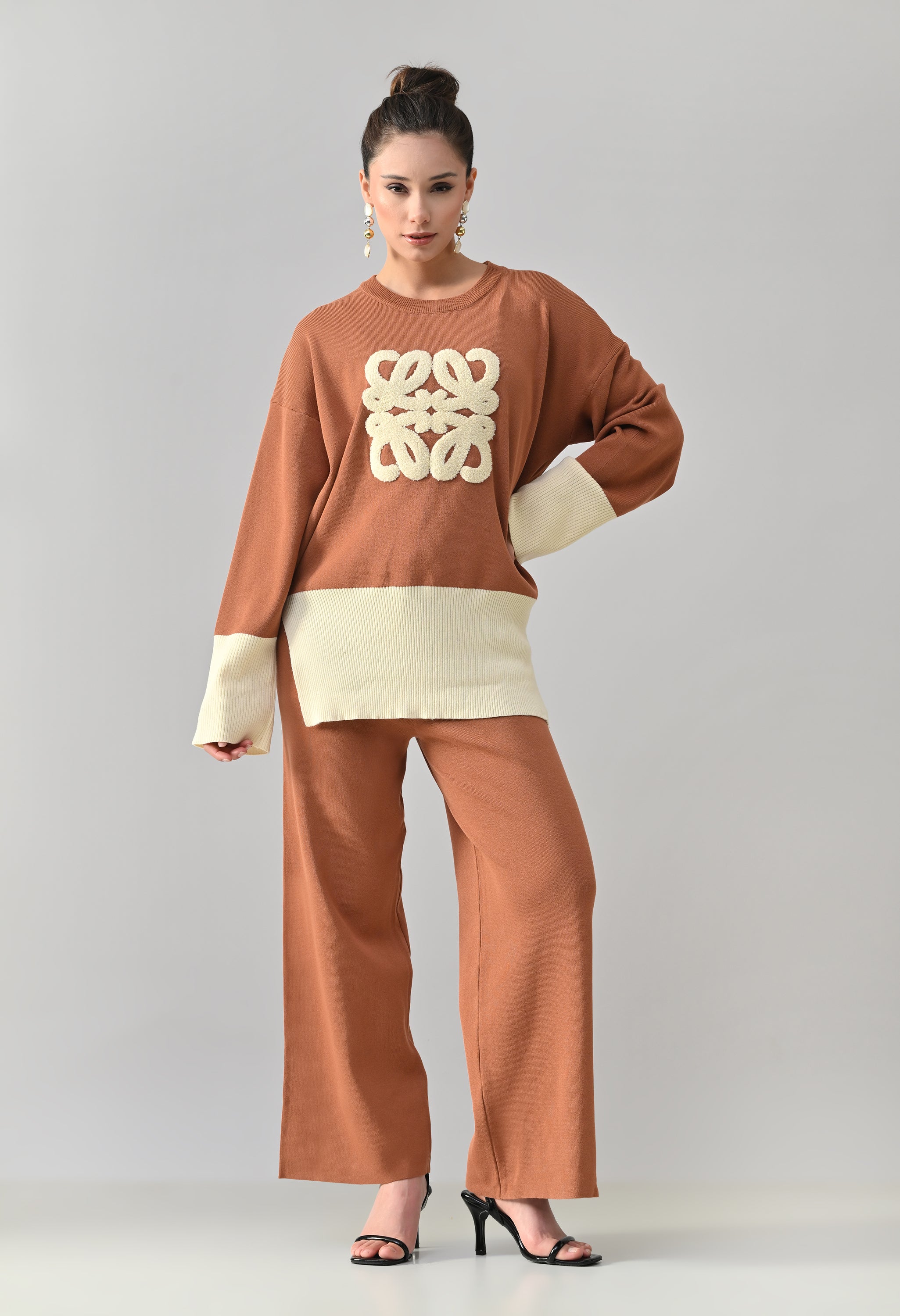 Elevate your style with our chic Colorblock Knitted Two-Piece Set – perfect for autumn and winter. Featuring a round neckline, side-slit top, and elasticated waistband pants, it’s your go-to for casual days, cozy evenings, or holiday lounging