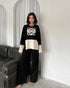 Elevate your style with our chic Colorblock Knitted Two-Piece Set – perfect for autumn and winter. Featuring a round neckline, side-slit top, and elasticated waistband pants, it’s your go-to for casual days, cozy evenings, or holiday lounging