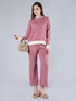 Stay cozy and stylish with the Warm Casual Two-Piece Set featuring a round neckline, long sleeves, and a striped pattern on the waist and sleeves. The straight knitted pants offer a relaxed fit, making it ideal for autumn and winter lounging or casual outings.