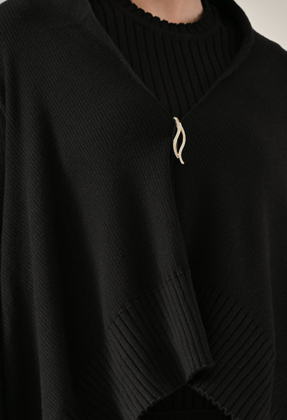 - Rib Sweater shrug with straight neck and open front
