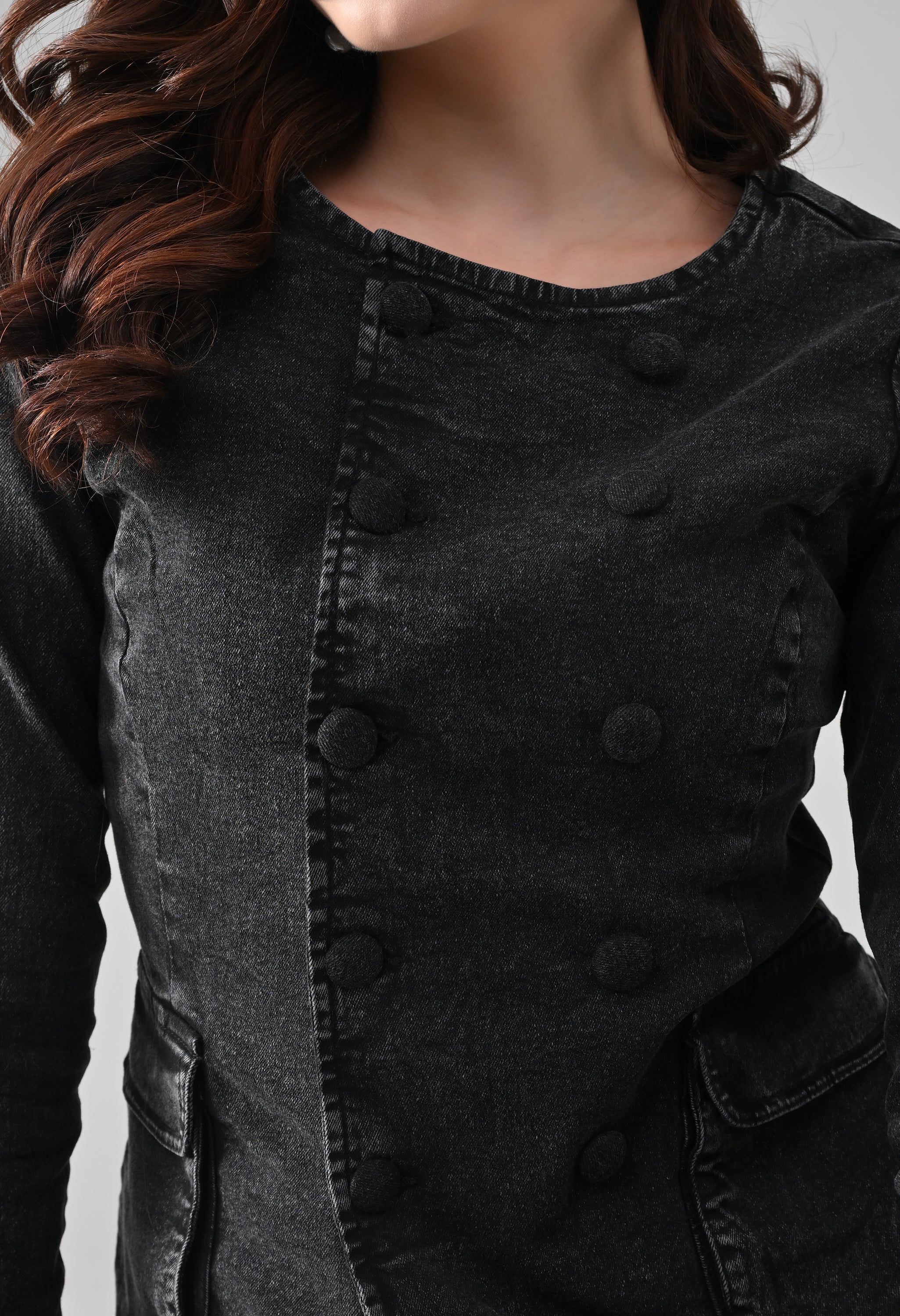 • Double-breasted button detailing at front