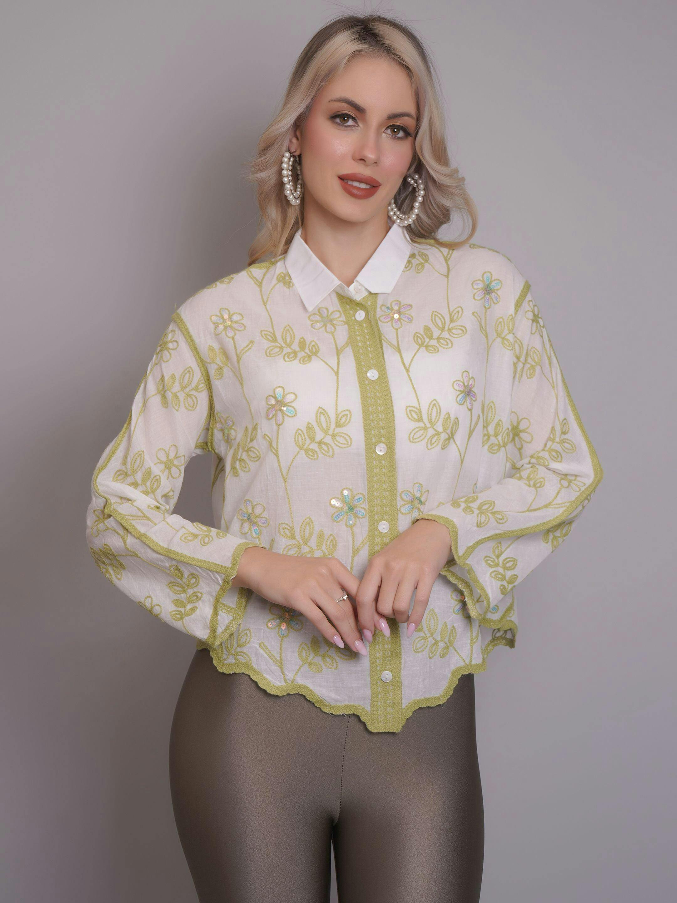 Introducing the Chain Stitch Embroidered Shirt – a versatile piece that is both trendy and elegant. Perfect for any occasion, from formal meetings to casual outings, this shirt features a stylish turn-down collar, drop shoulders, and long comfortable sleeves.