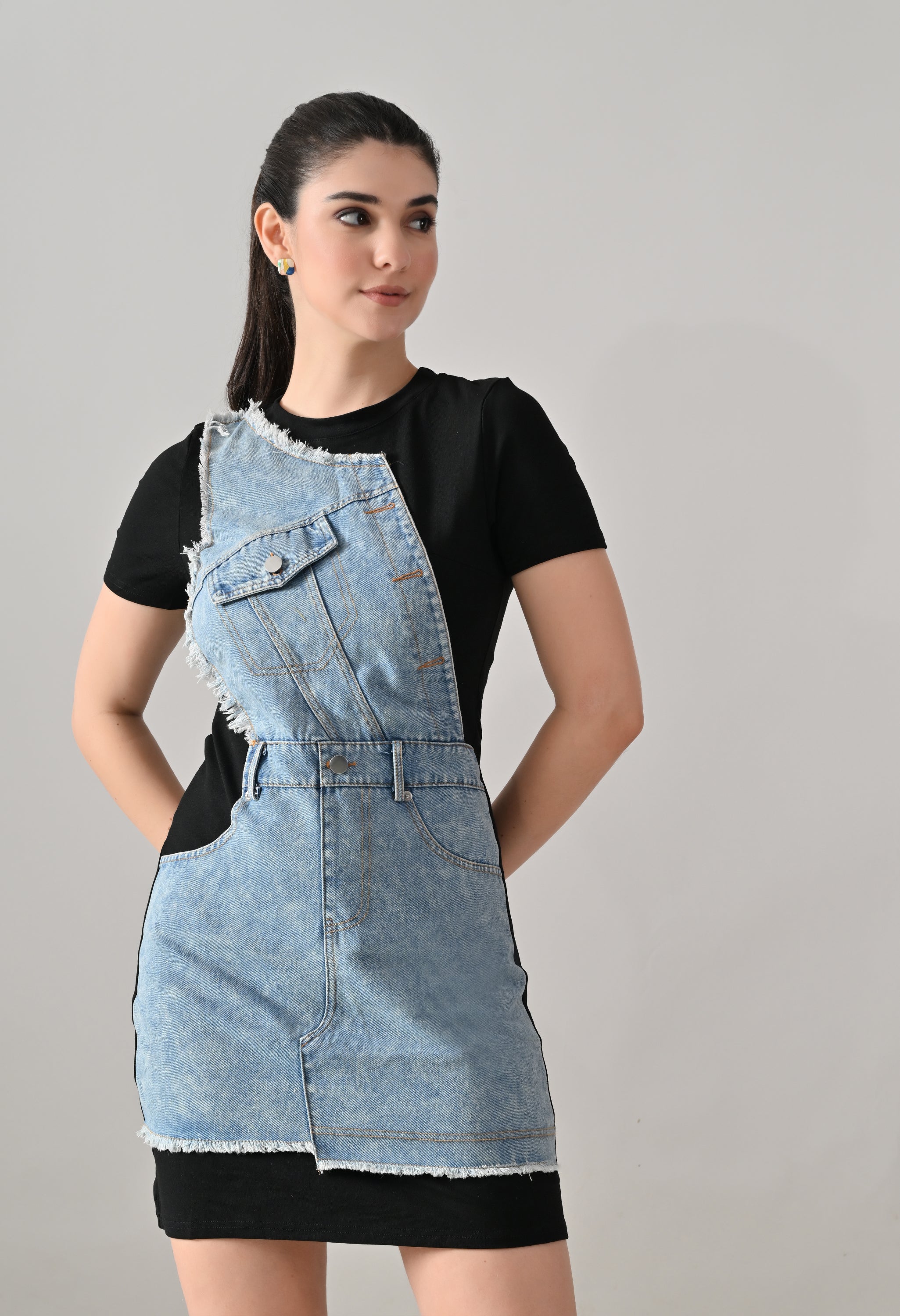 Effortlessly chic, the Denim Whisper Dress blends a classic black bodycon silhouette with an edgy denim overlay. Featuring raw hem detailing, utility pocket accents, and a flattering fit, this versatile piece takes you from casual daytime outings to statement evening looks with ease.