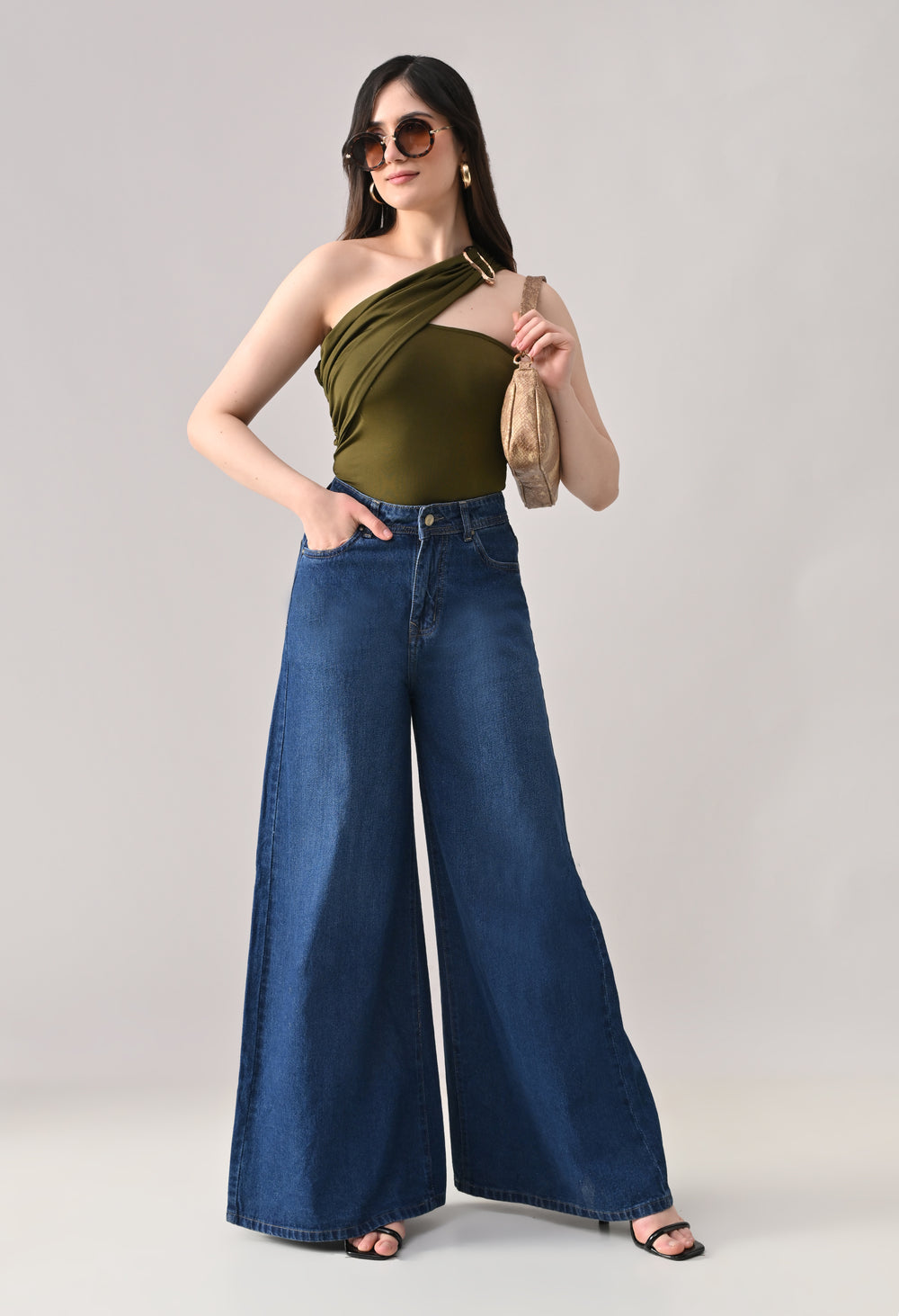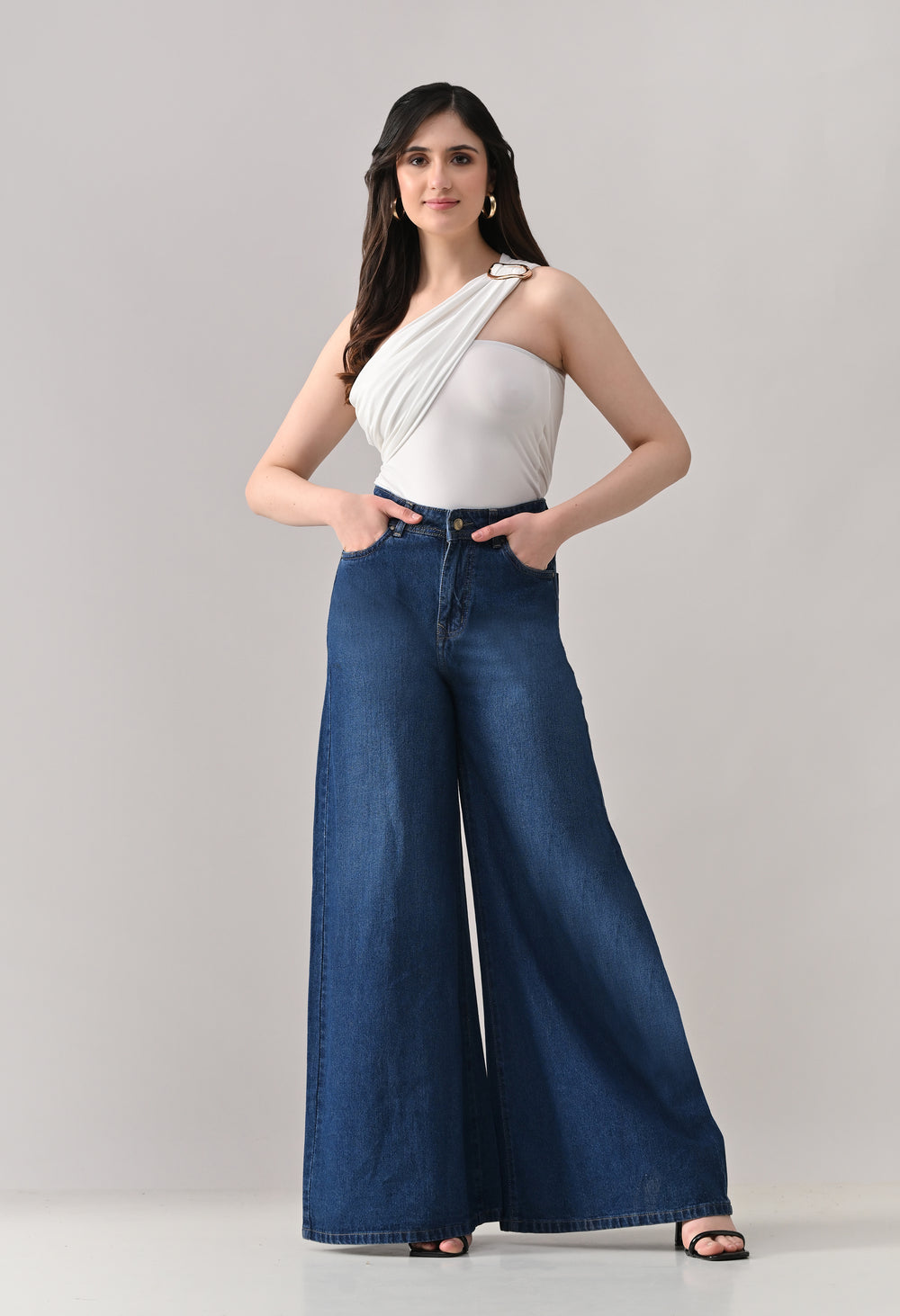 - One-shoulder asymmetrical neckline