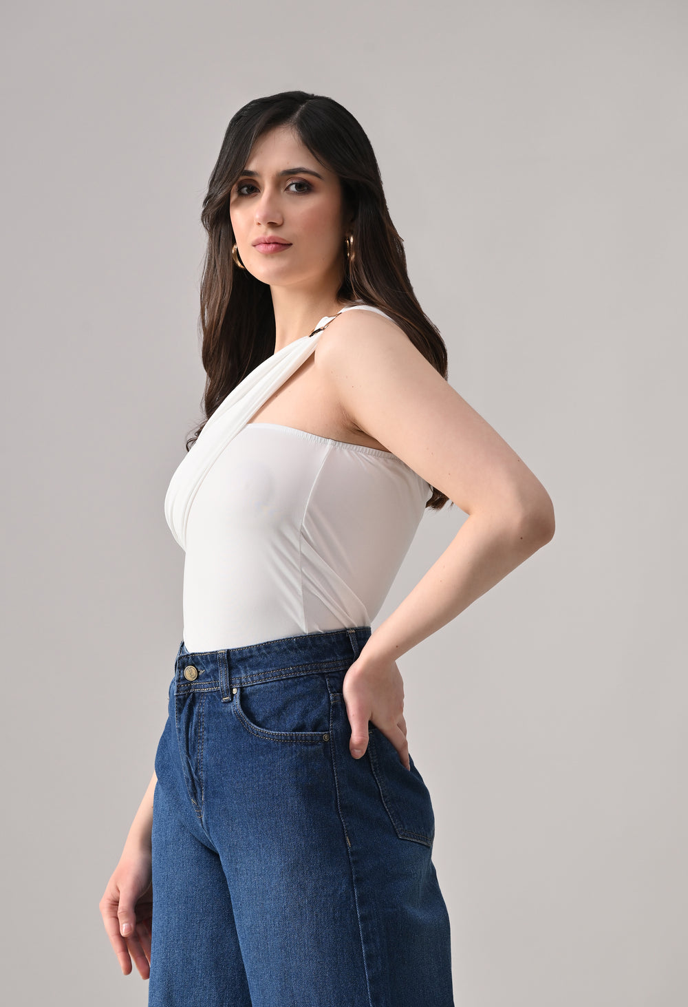 Draped Asymmetrical Bodysuit