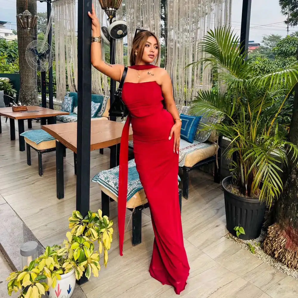 A set designed to accentuate and sculpt, featuring a mesh corset paired with a matching long gathered skirt. The Scandinavian scarf makes it feel delicate & sexy while the soft stretchable fabric ensures a comfortable, flawless fit from every angle. Perfect for cocktail nights that call for elegance with unmistakable glam.
