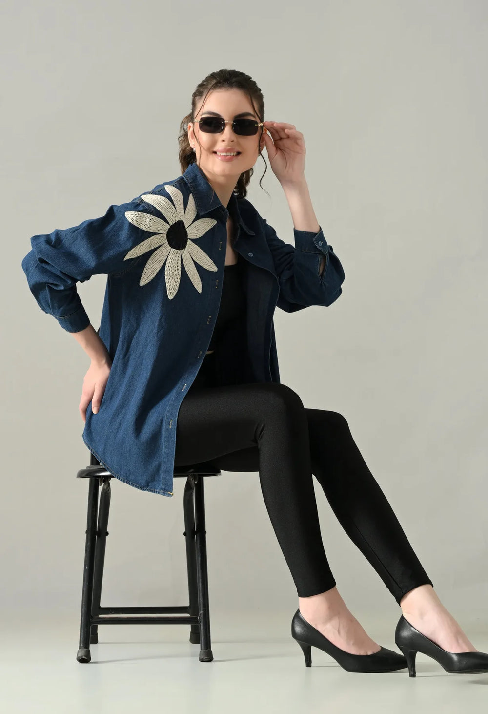 Embroidered Denim Blossom Shirt