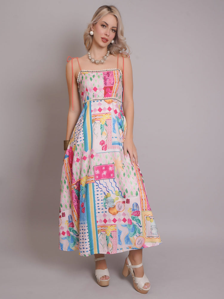 Stay bold and breezy in this Graffiti Printed Maxi Sundress, perfect for summer, holidays, beach days, or evening outings. Featuring a square neckline, adjustable spaghetti straps, and a smocked upper back, its flared silhouette and stretchable fabric ensure a comfortable yet stylish fit test.