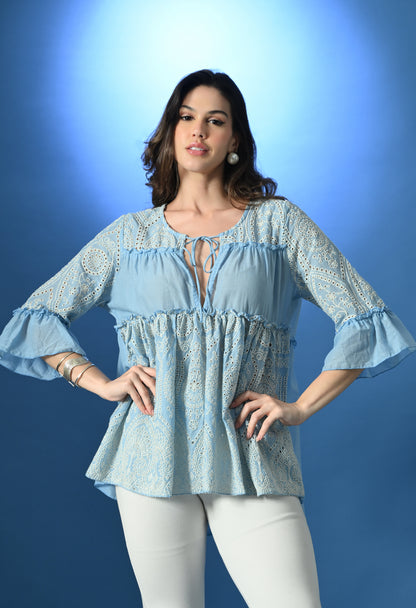 • Schiffli Flared Top/ Blouse