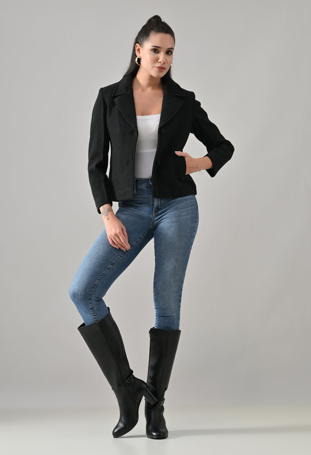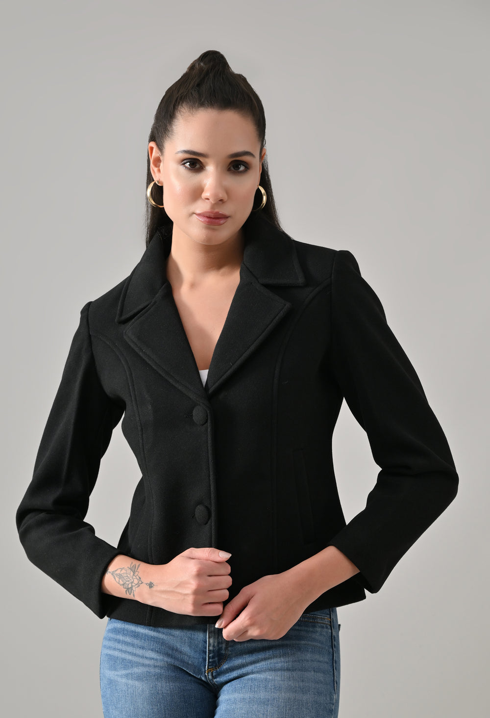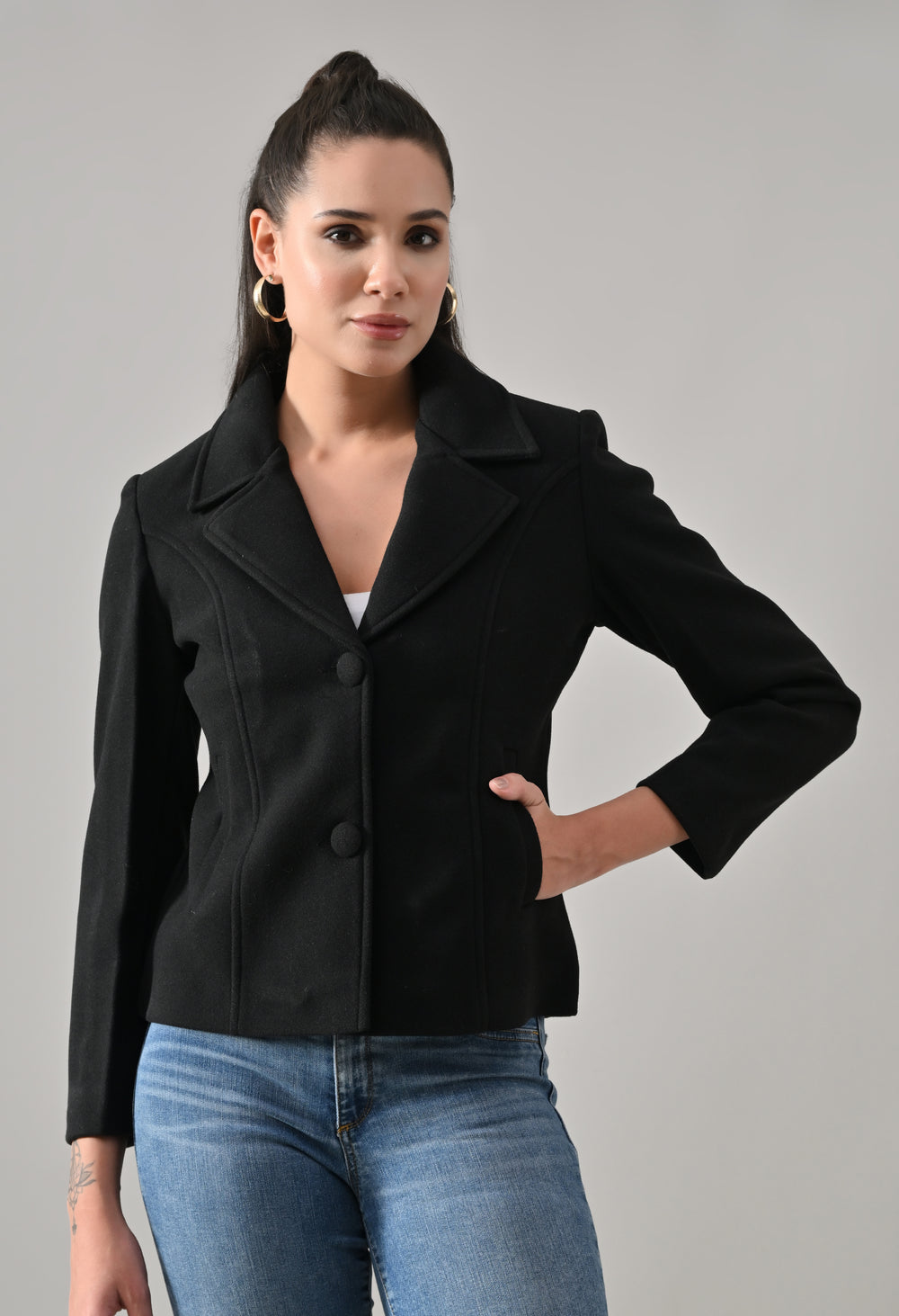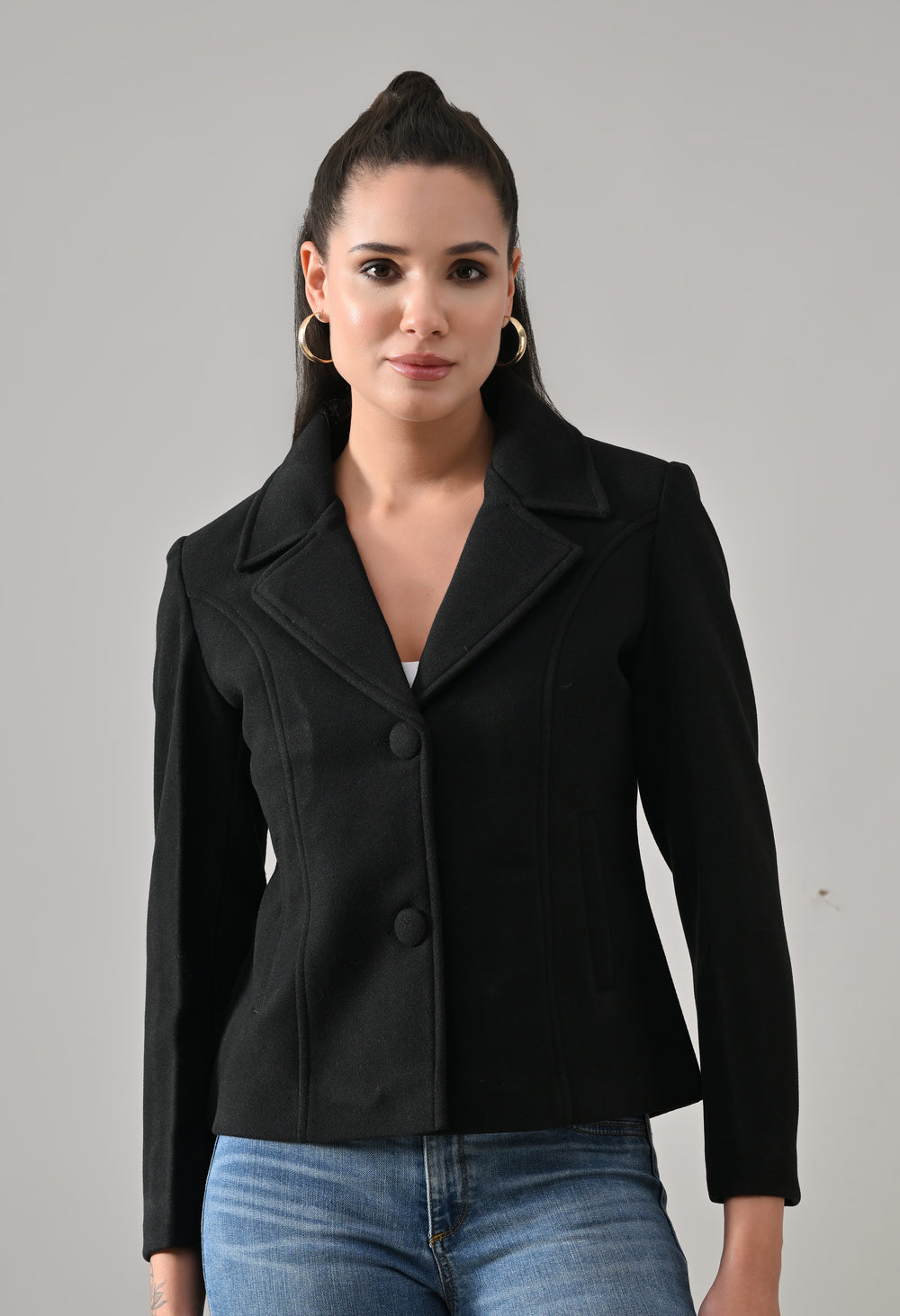 Elevate your winter style with the ANNY Wool-Blend Coat. Crafted from a soft, lightweight wool blend, this tailored regular coat offers warmth and comfort. Featuring a structured silhouette, notched lapel, and two-button closure, it delivers a refined, feminine look for any occasion. The fully lined design and waist seams ensure a smooth fit and flattering shape.
