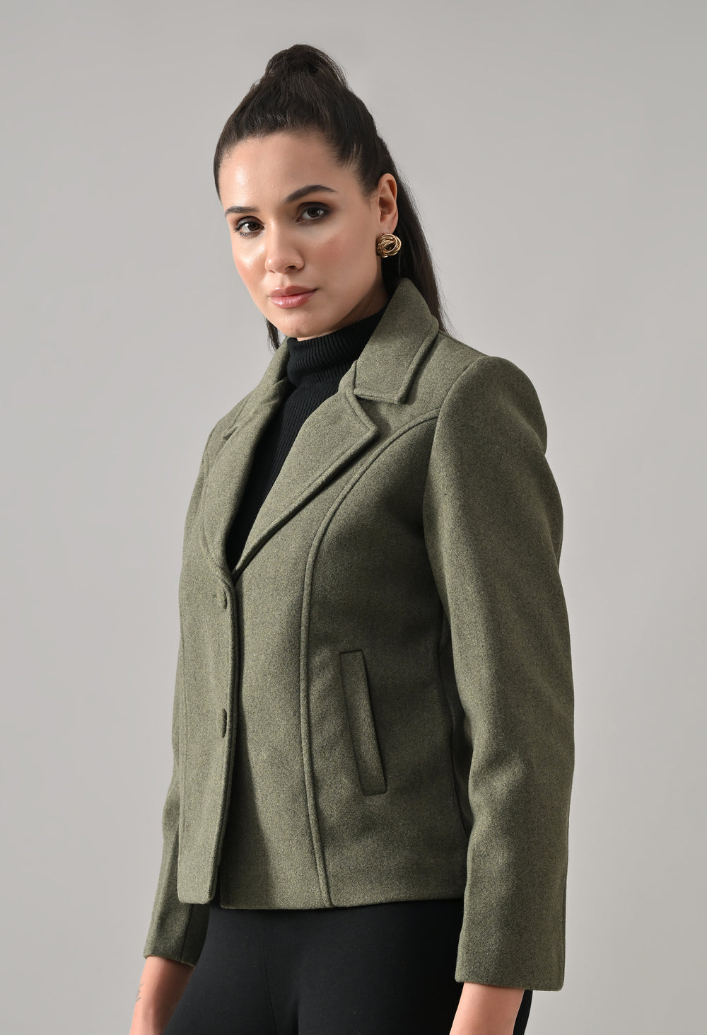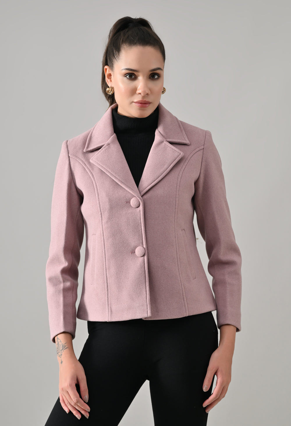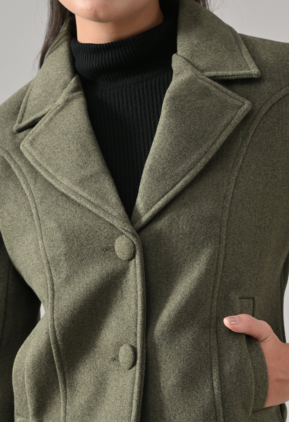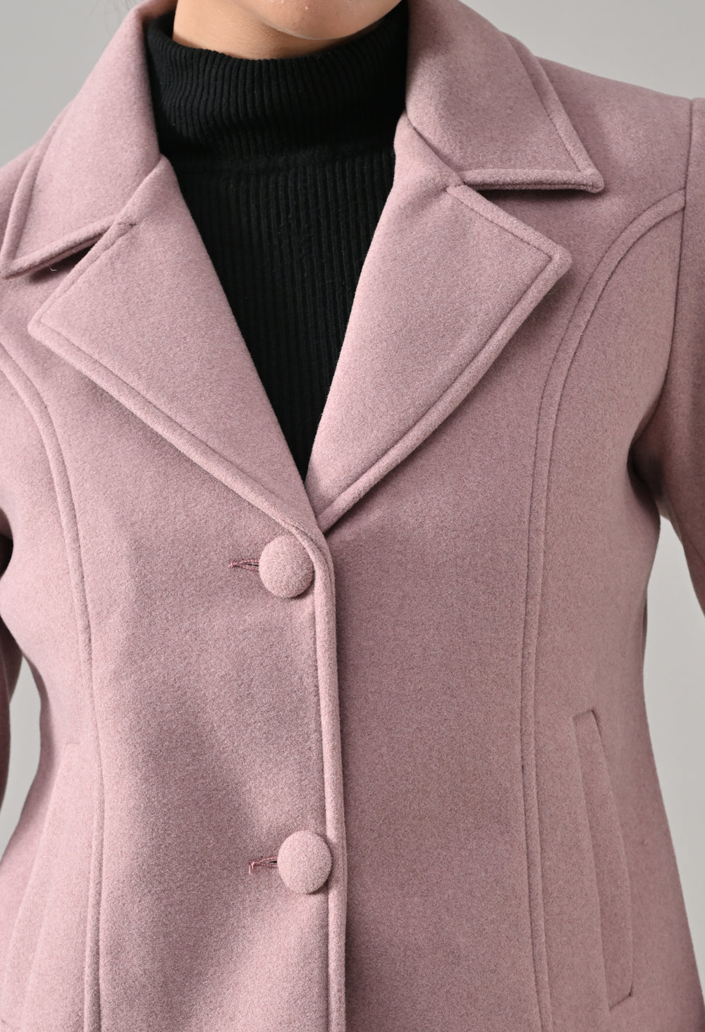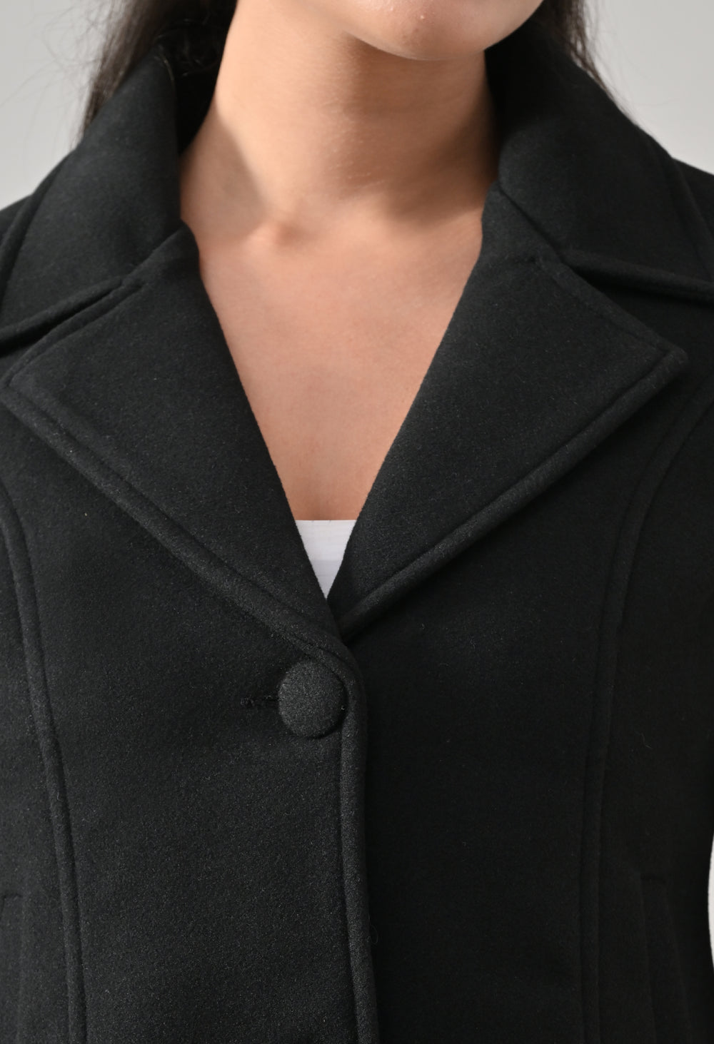• Coat with notched lapel neckline