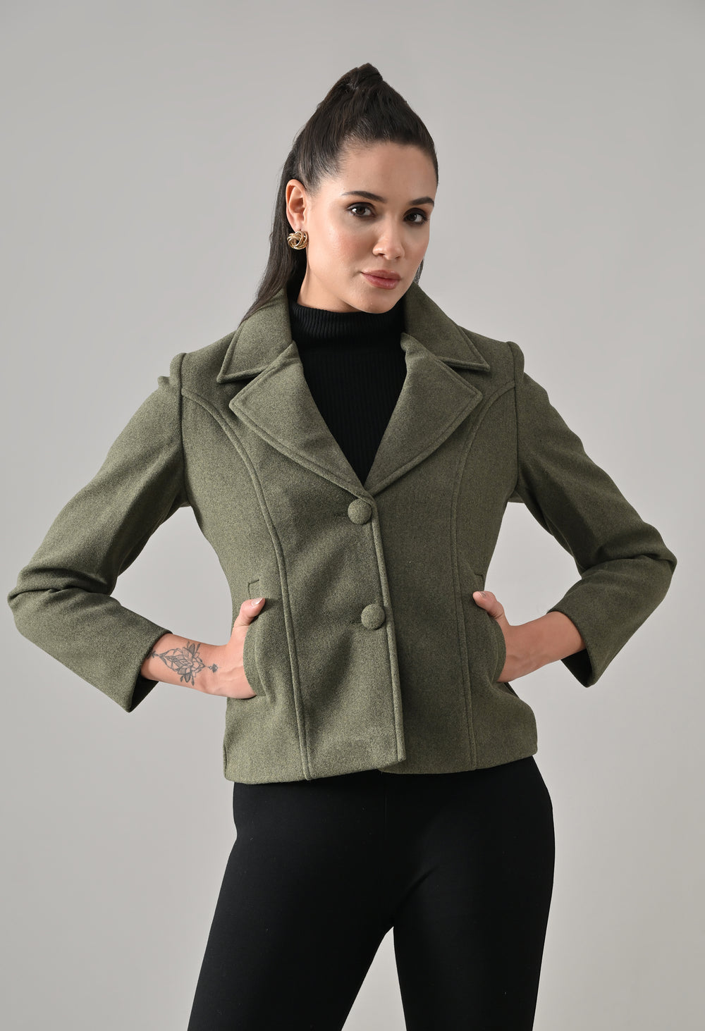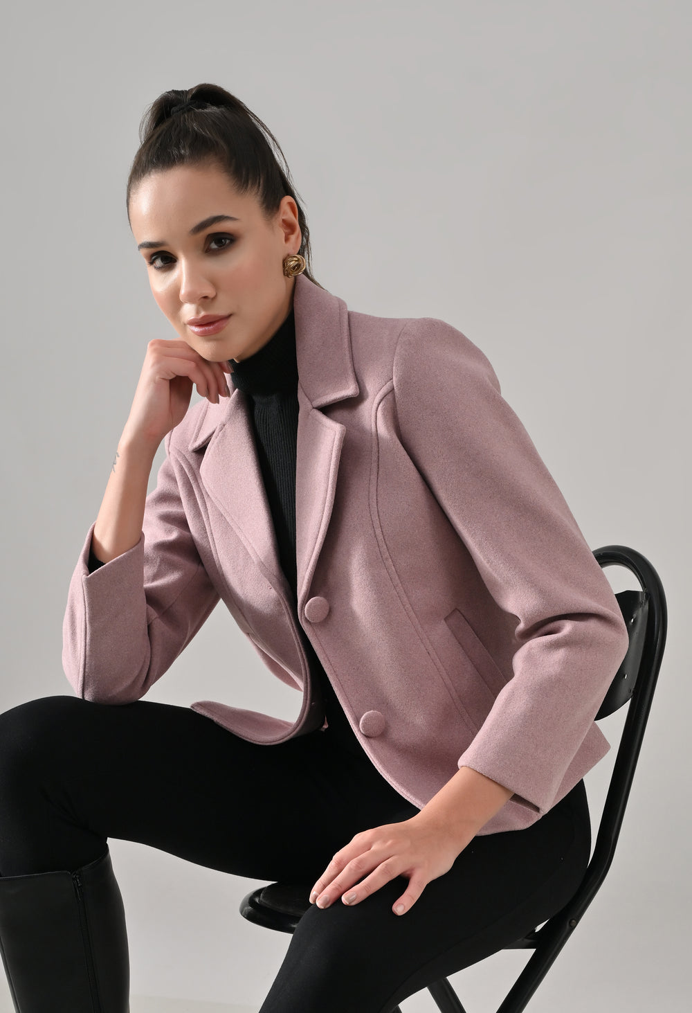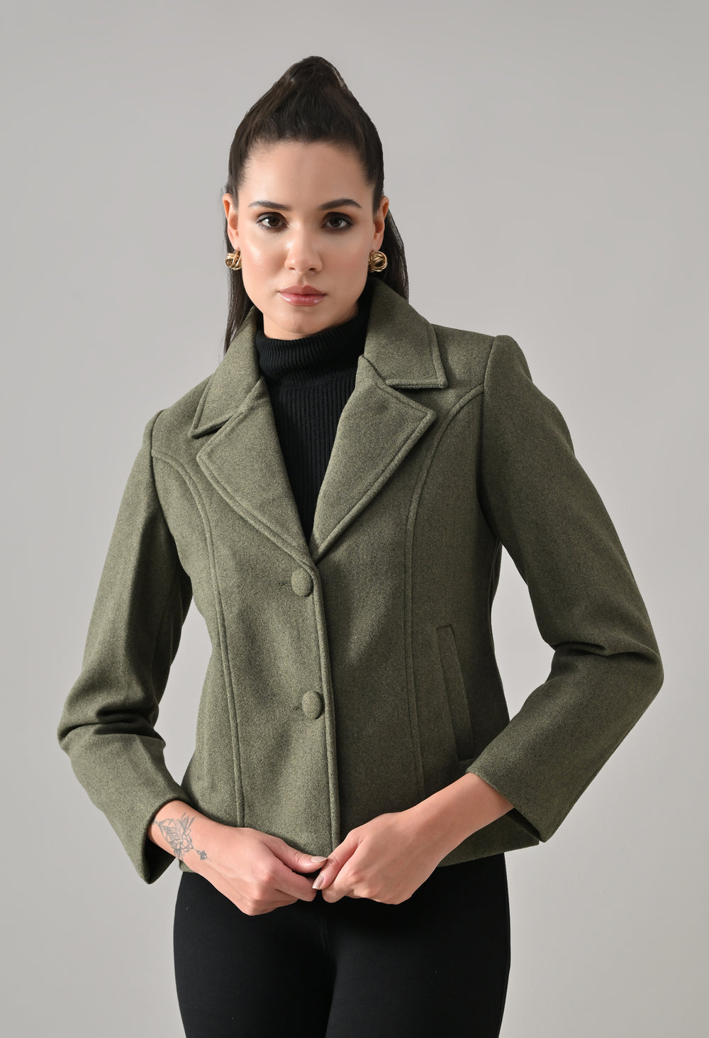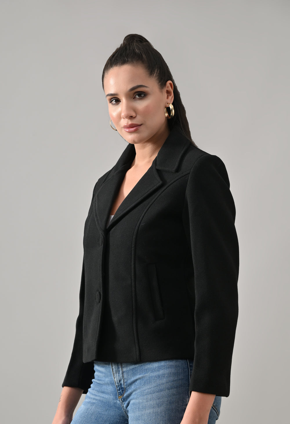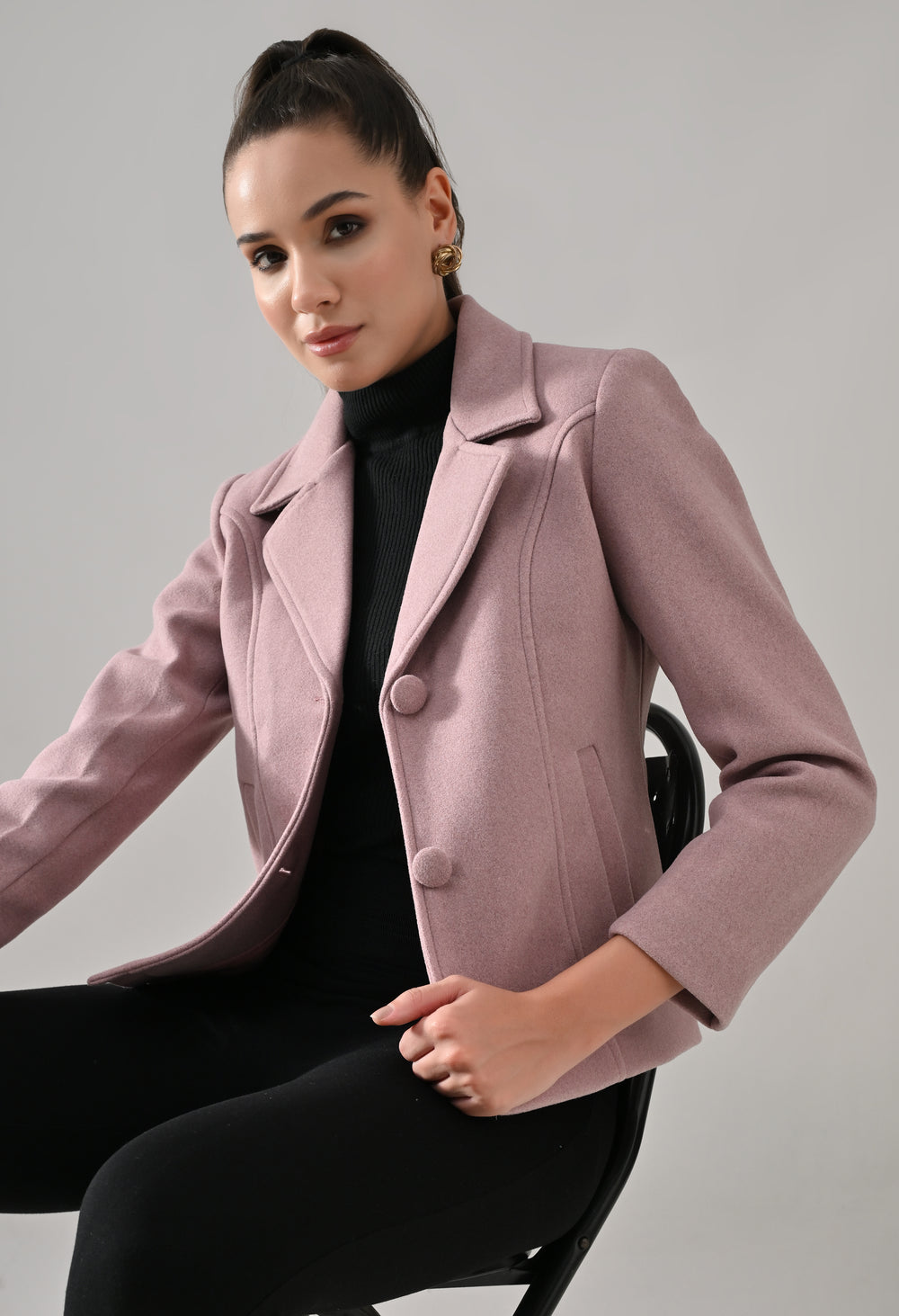• Coat with notched lapel neckline