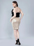 - The model with bust size 34", waist 27", hips 37.5" and height 5'7'' is wearing a size M.